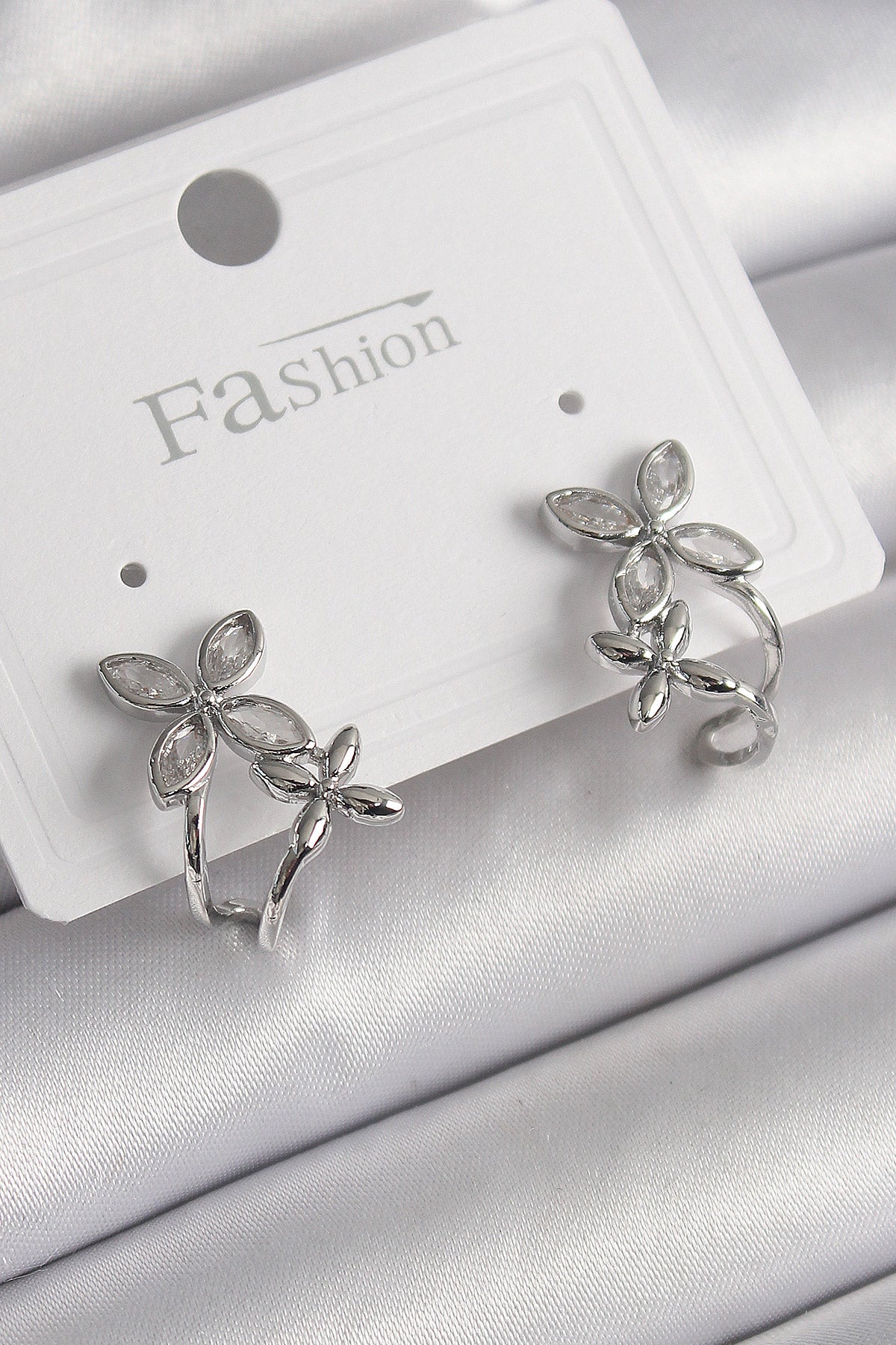 - Ürün Adı: Pirinç Gümüş Renk Zirkon Taşlı 2'Li Çiçek Model Kadın Küpe