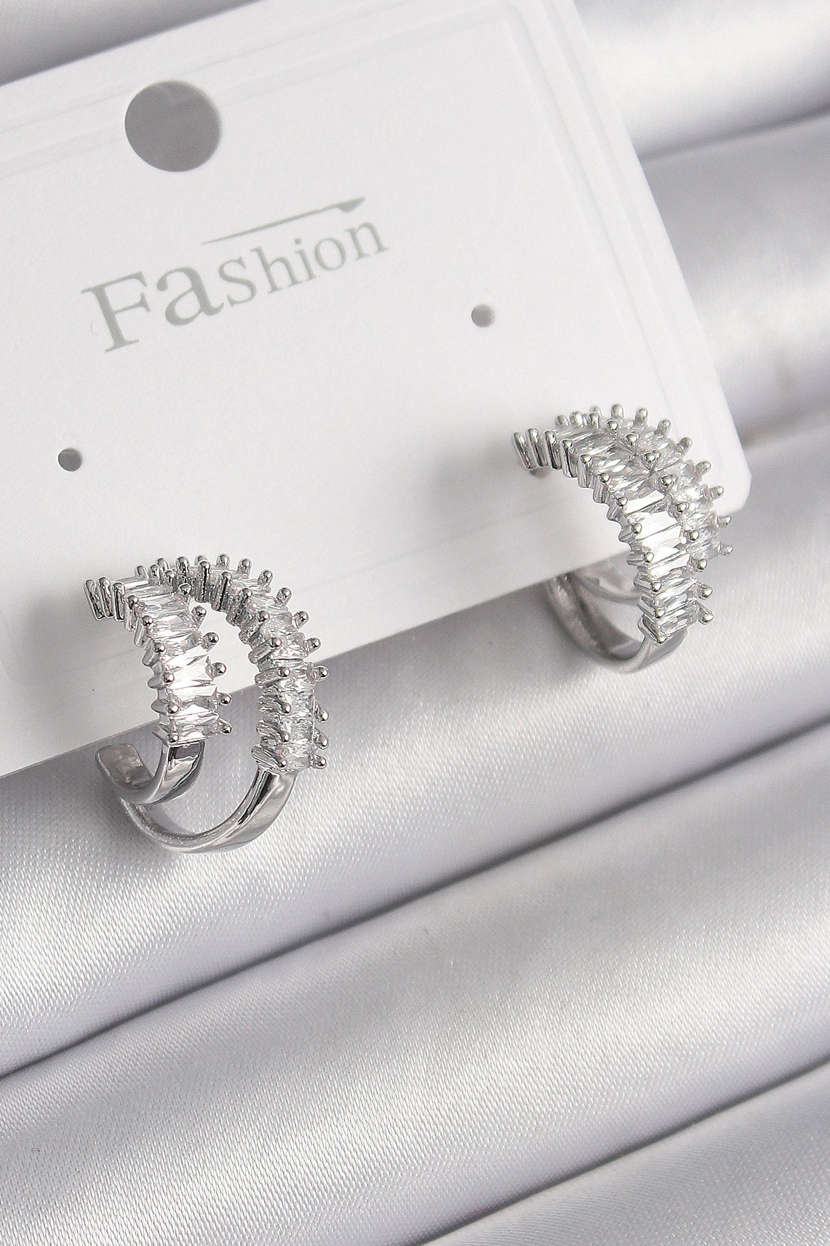- Ürün Adı: Pirinç Gümüş Renk 2'Li Zirkon Taşlı Halka Model Kadın Küpe