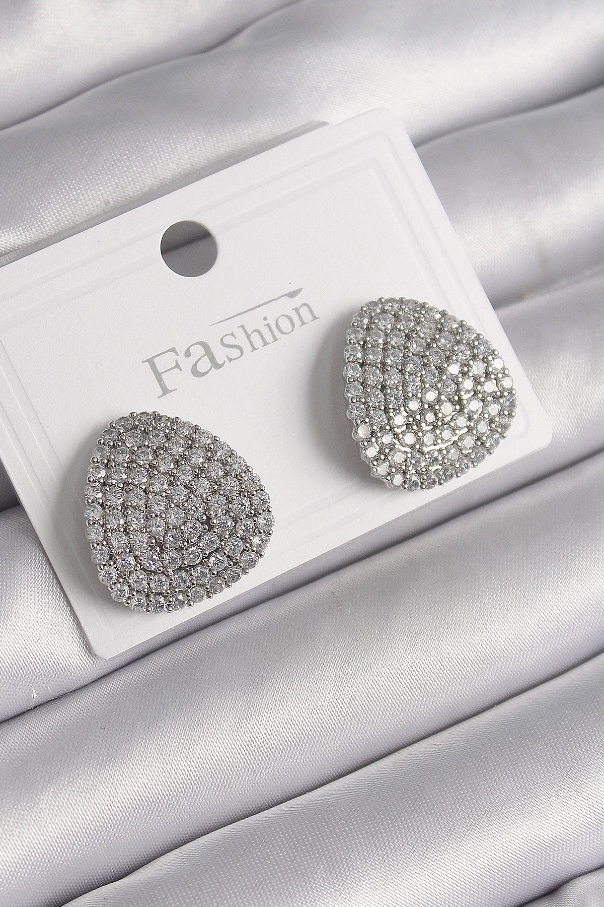 - Ürün Adı: Pirinç Gümüş Renk Zirkon Taşlı Plaka Model Kadın Küpe