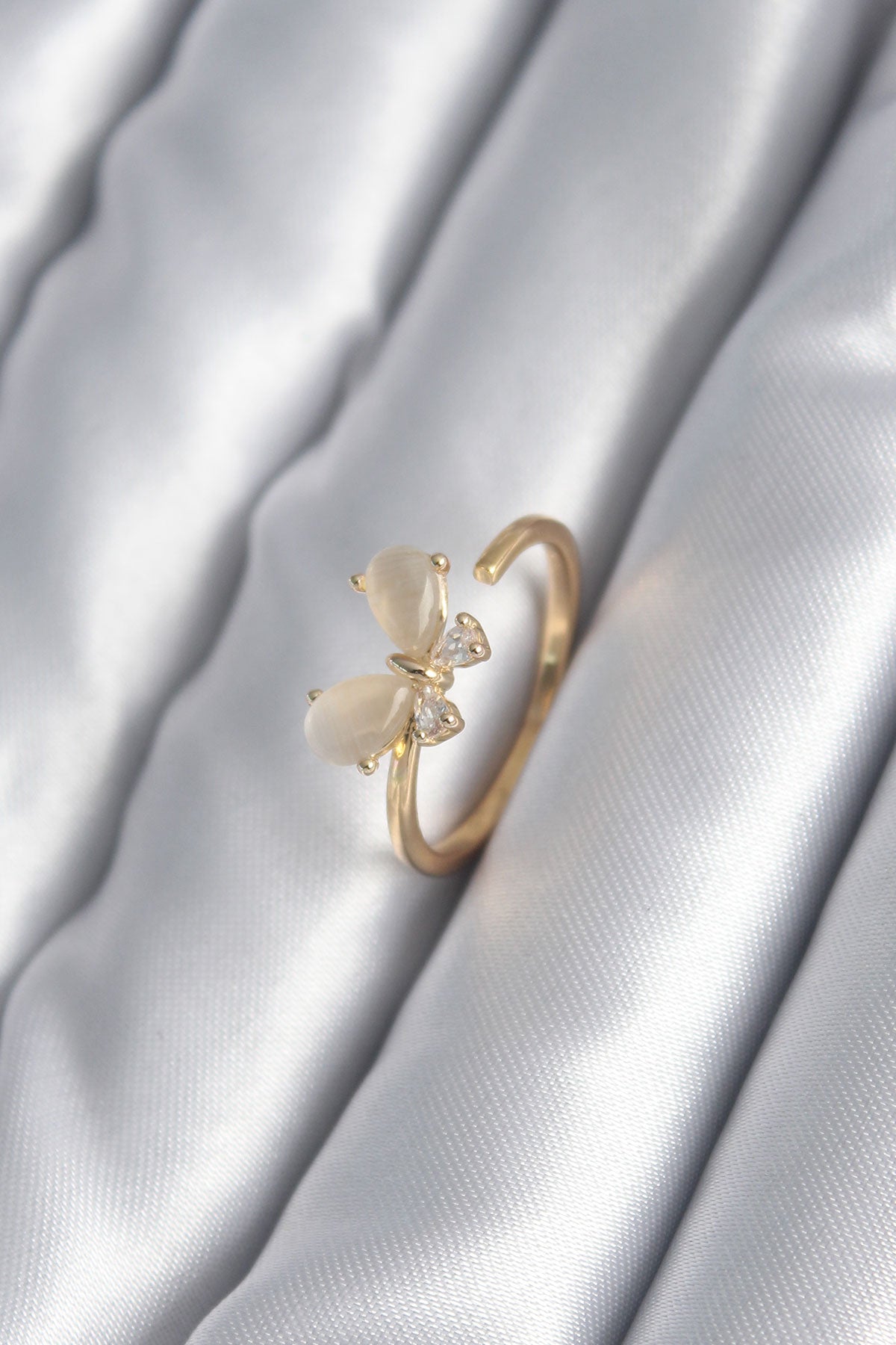 BYK2989 - Pirinç Gold Renk Zirkon Taş Detay Kelebek Model Kadın Yüzük
