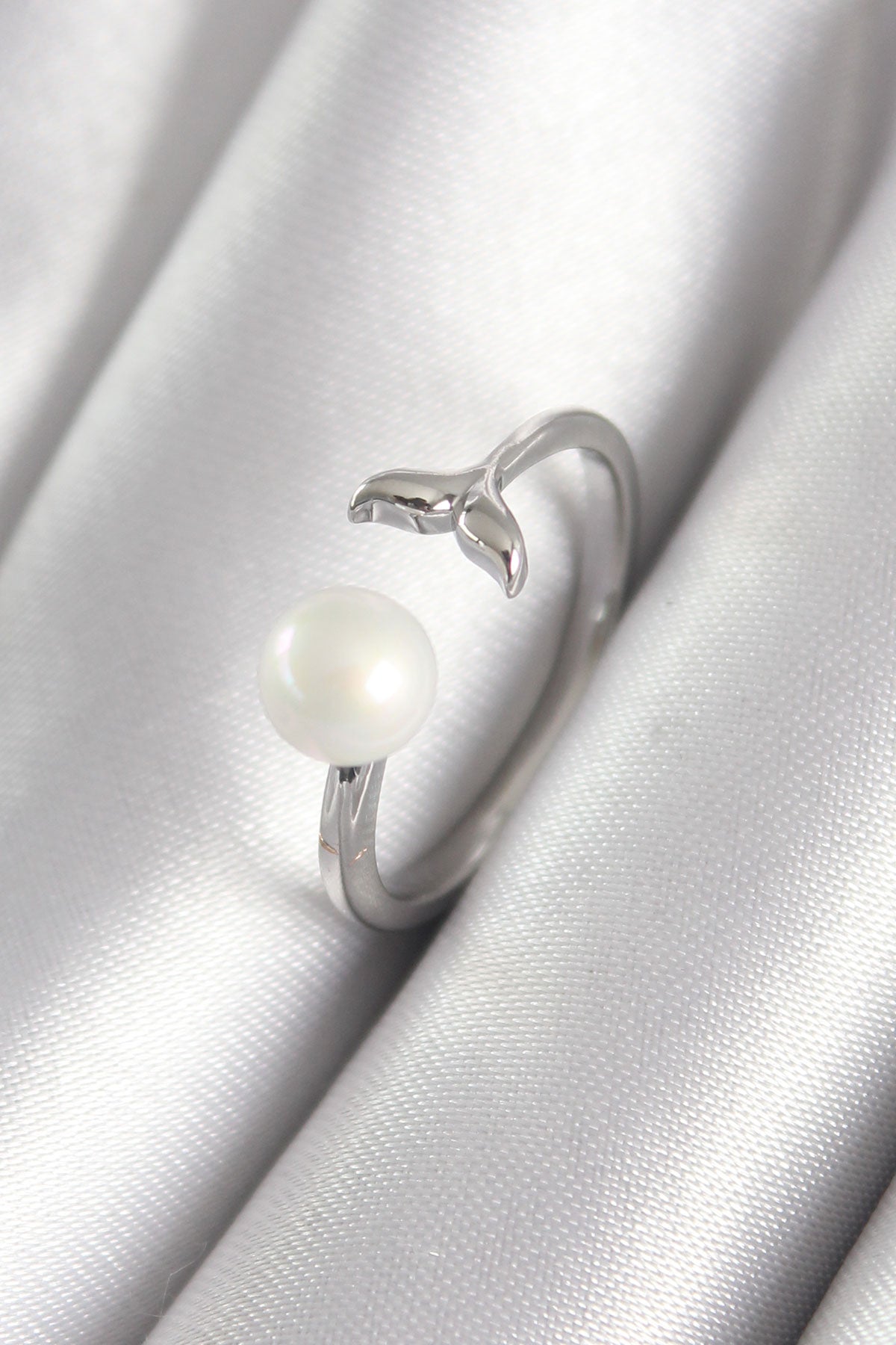 BYK3075 - Pirinç Gümüş Renk Top İnci Figür Balık Kuyruğu Model Kadın Yüzük