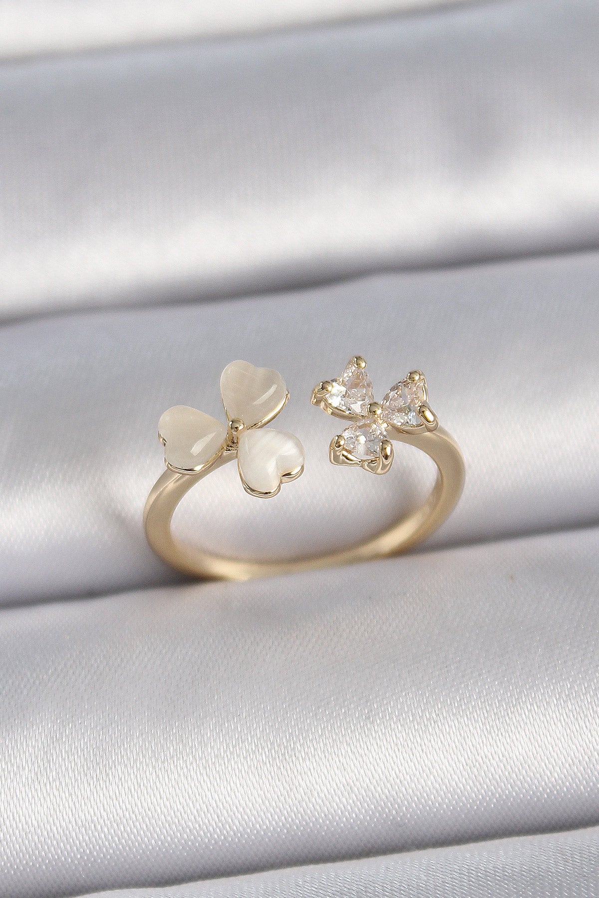 BYK3388 - Pirinç Gold Renk Ayarlanabilir Zirkon Taşlı Kalp Beyaz Mineli Model Kadın Yüzük