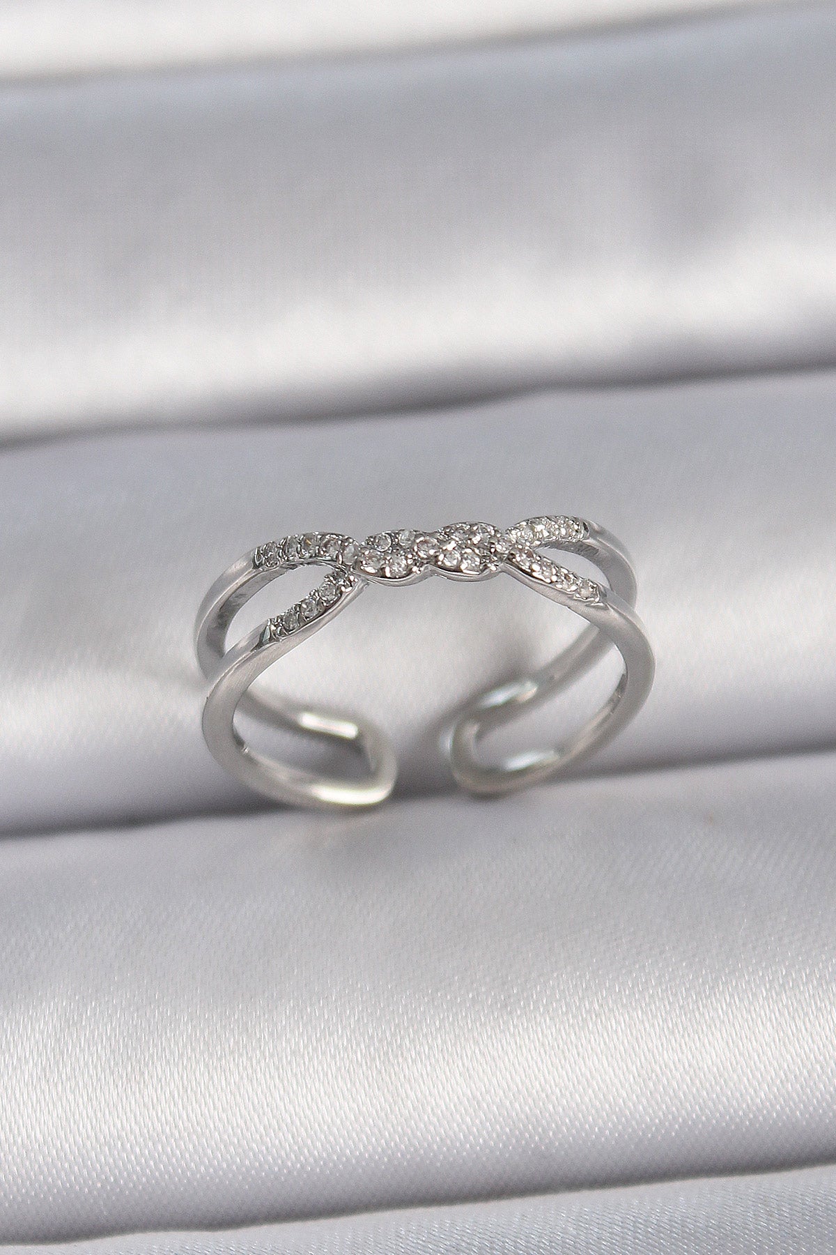 BYK3401 - Pirinç Gümüş Renk Ayarlanabilir Zirkon Taşlı Sarmal Model Kadın Yüzük