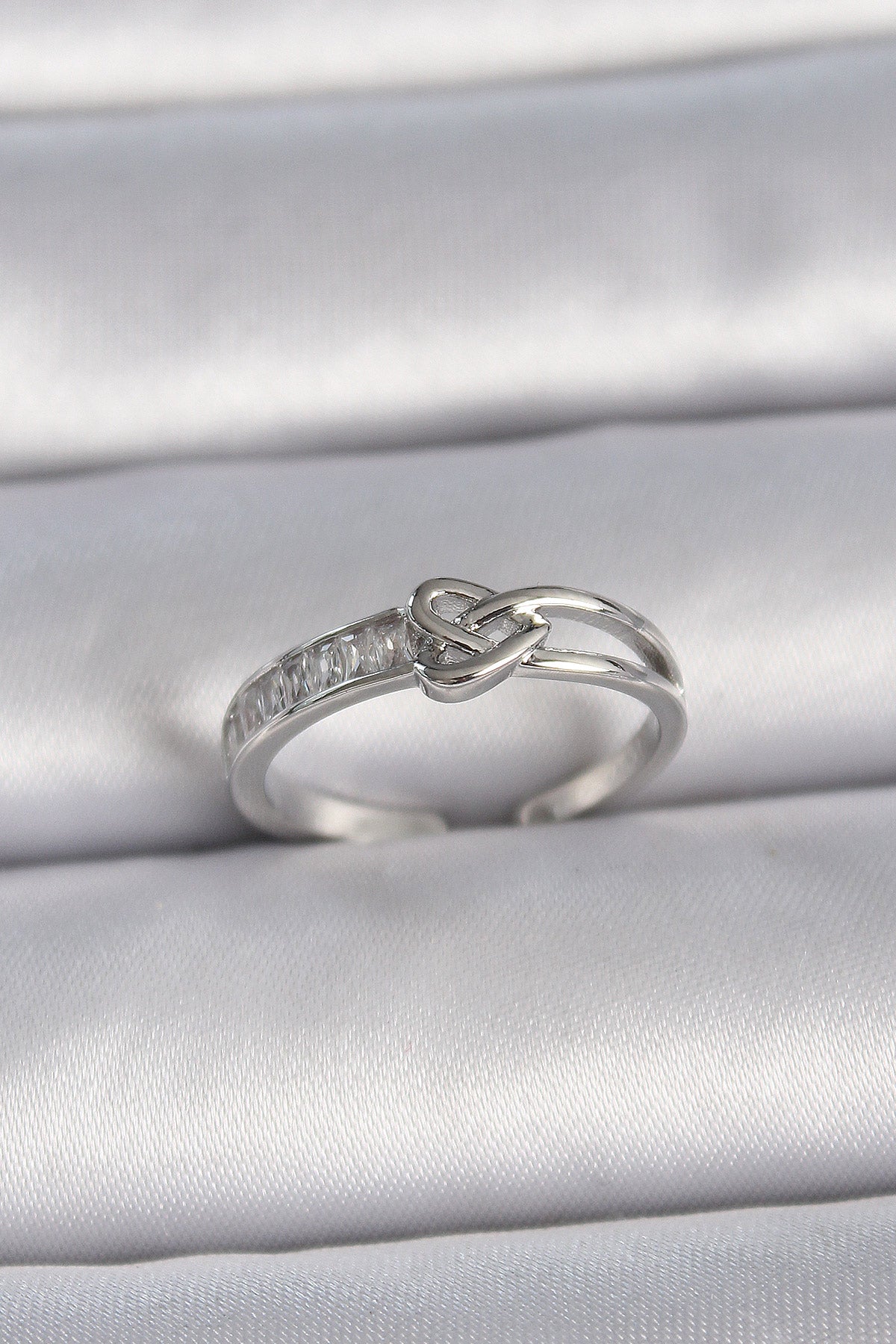 BYK3405 - Pirinç Gümüş Renk Ayarlanabilir Zirkon Taşlı Düğüm Kalp Model Kadın Yüzük