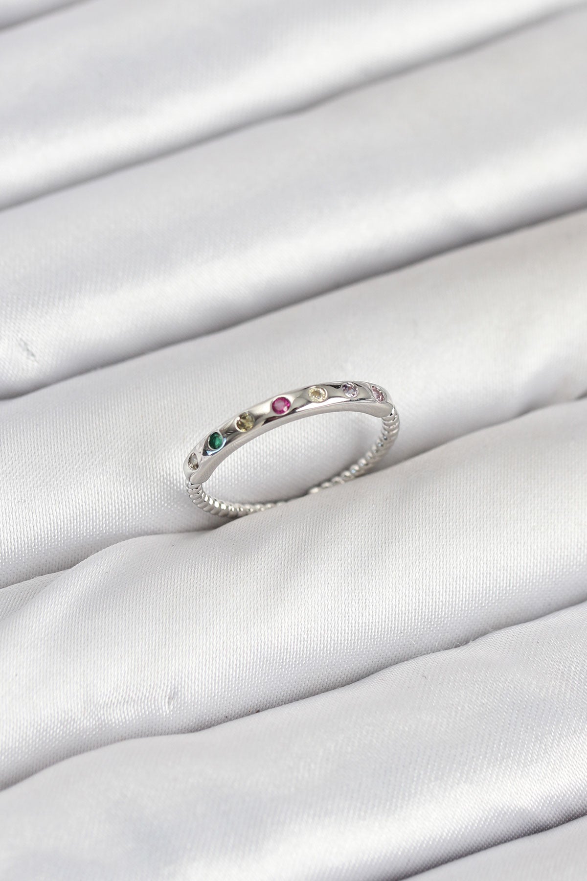 - Ürün Adı: Pirinç Gümüş Renk Renkli Zirkon Taşlı Kadın Yüzük