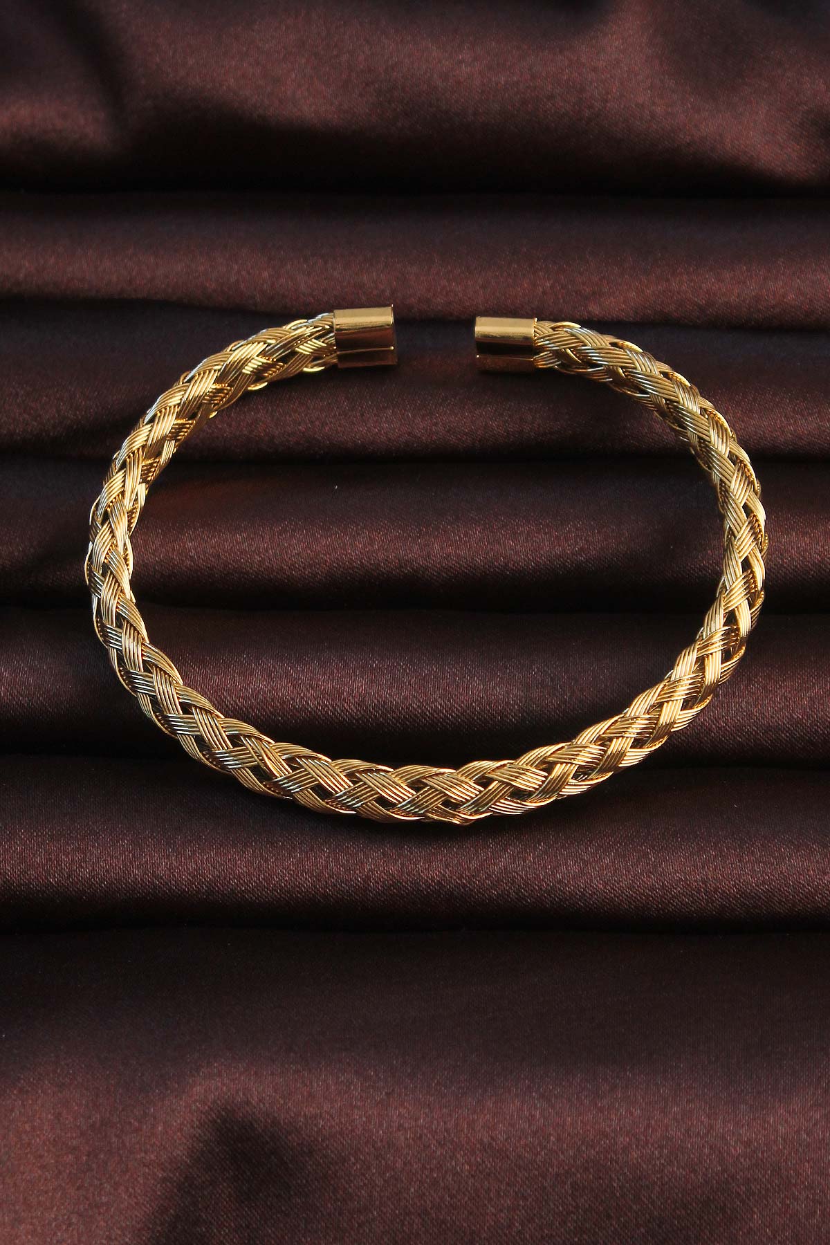 EB3674 - 316L Çelik Altın Renk Kalın Yassı Örgü Model Erkek Bileklik