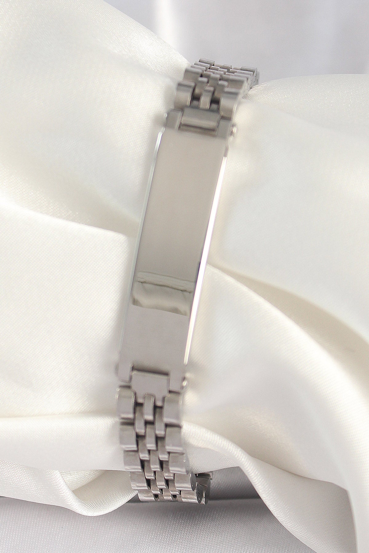 316L Çelik Gümüş Renk Zincir Künye Model Erkek Bileklik |