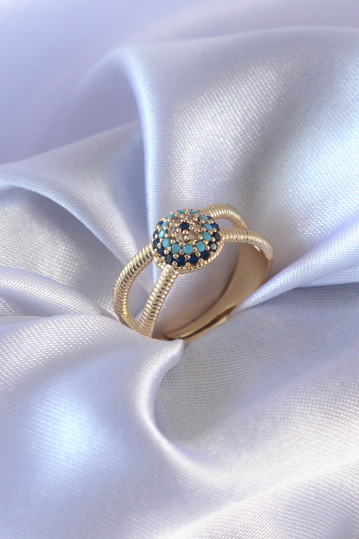 Gold Renk Nazar Boncuk Model Kadın Yüzük - BYK2568
