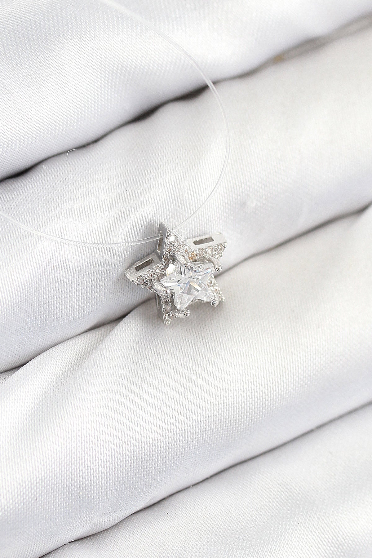 Misineli Yıldız Model Gümüş Renk Hayalet Kolye