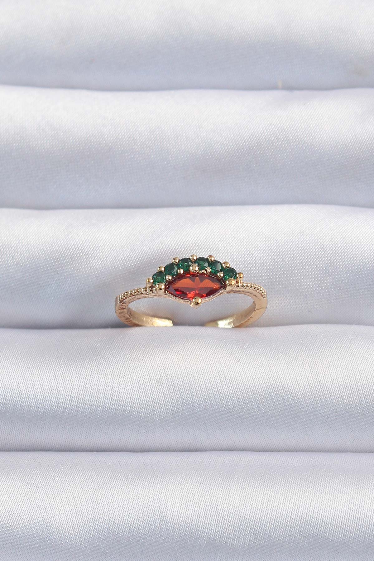 Pirinç Altın Renk Renkli Zirkon Taşlı Ayarlanabilir Karpuz Model Yüzük - BYK3295
