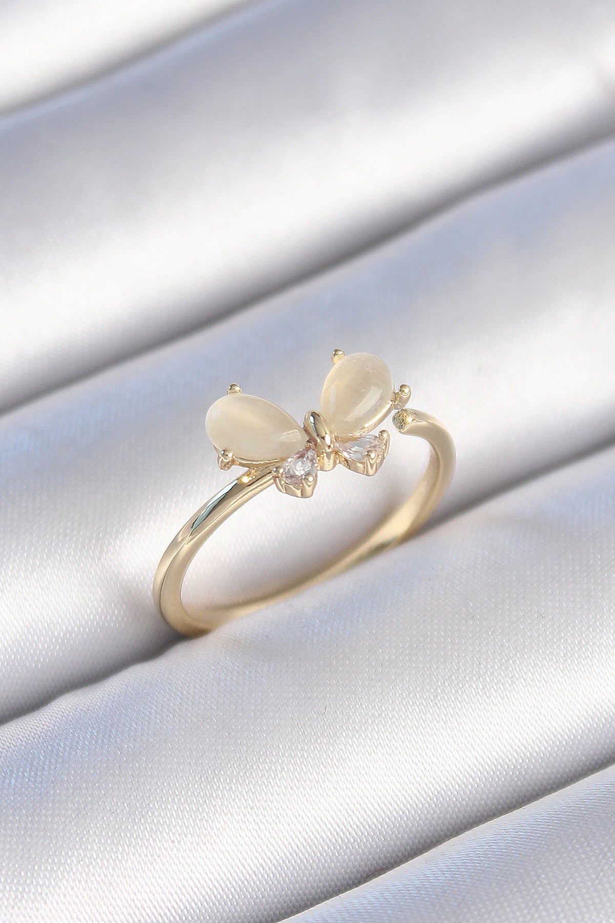 Pirinç Gold Renk Beyaz Mineli Zirkon Taşlı Kelebek Model Kadın Yüzük - BYK3464