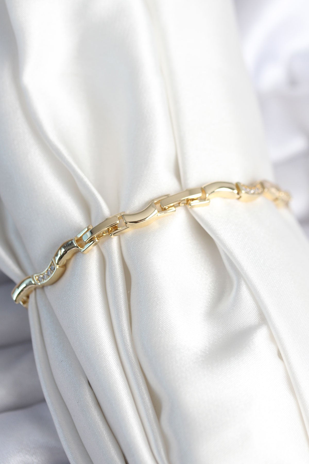 Pirinç Gold Renk Dalgalı Model Kadın Bileklik - BB7962