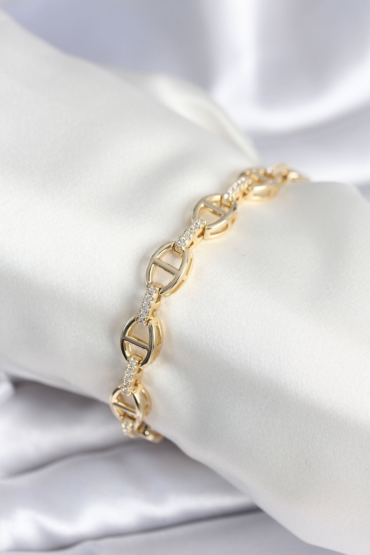 Pirinç Gold Renk Parçalı Zincir Model Kadın Bileklik - BB7966