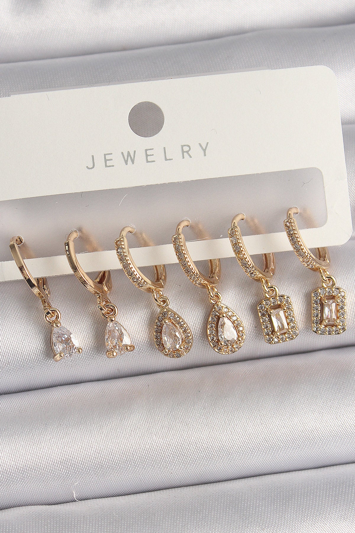 Pirinç Gold Renk Sallantı Zirkon Taşı Damla Model Kadın Küpe Seti - BKP10120