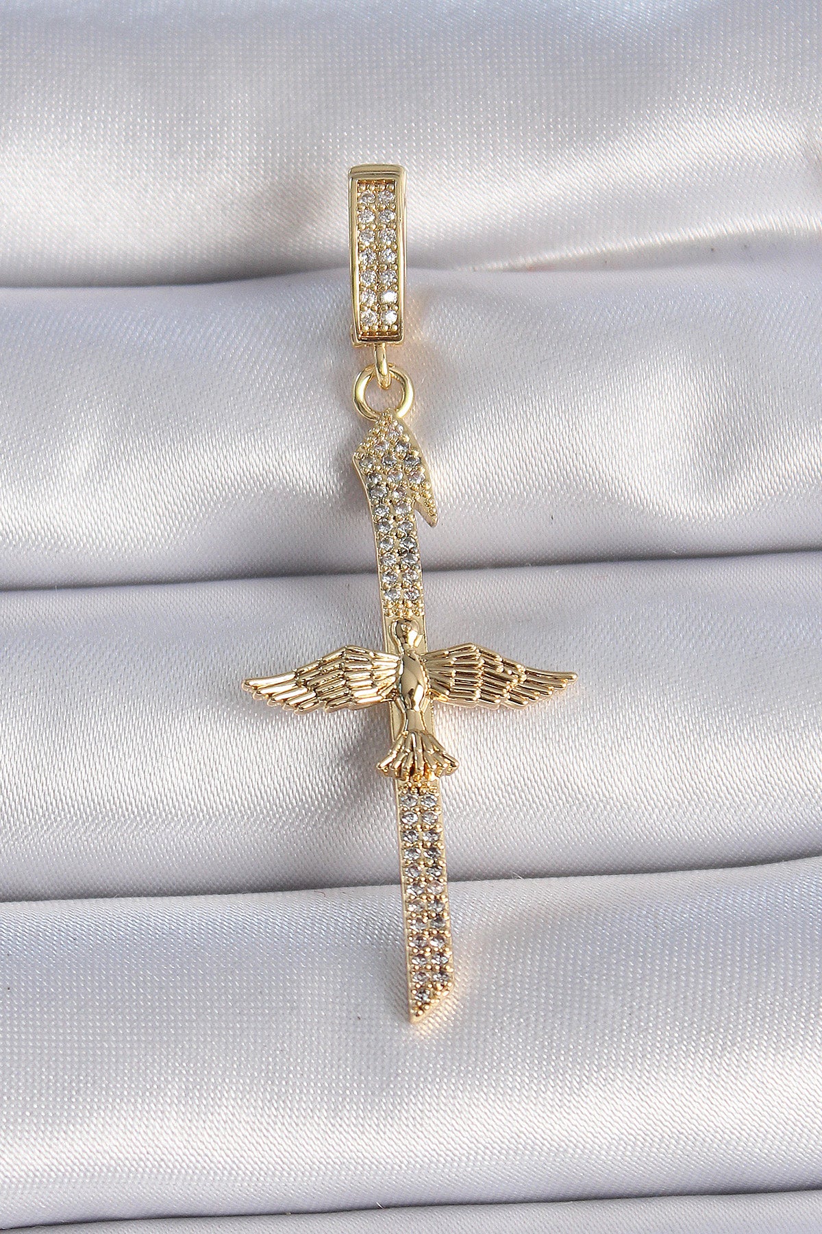 Pirinç Gold Renk Zirkon Taş Detaylı Elif Model Anka Kuşu Figür Ajda Charm - BC1013