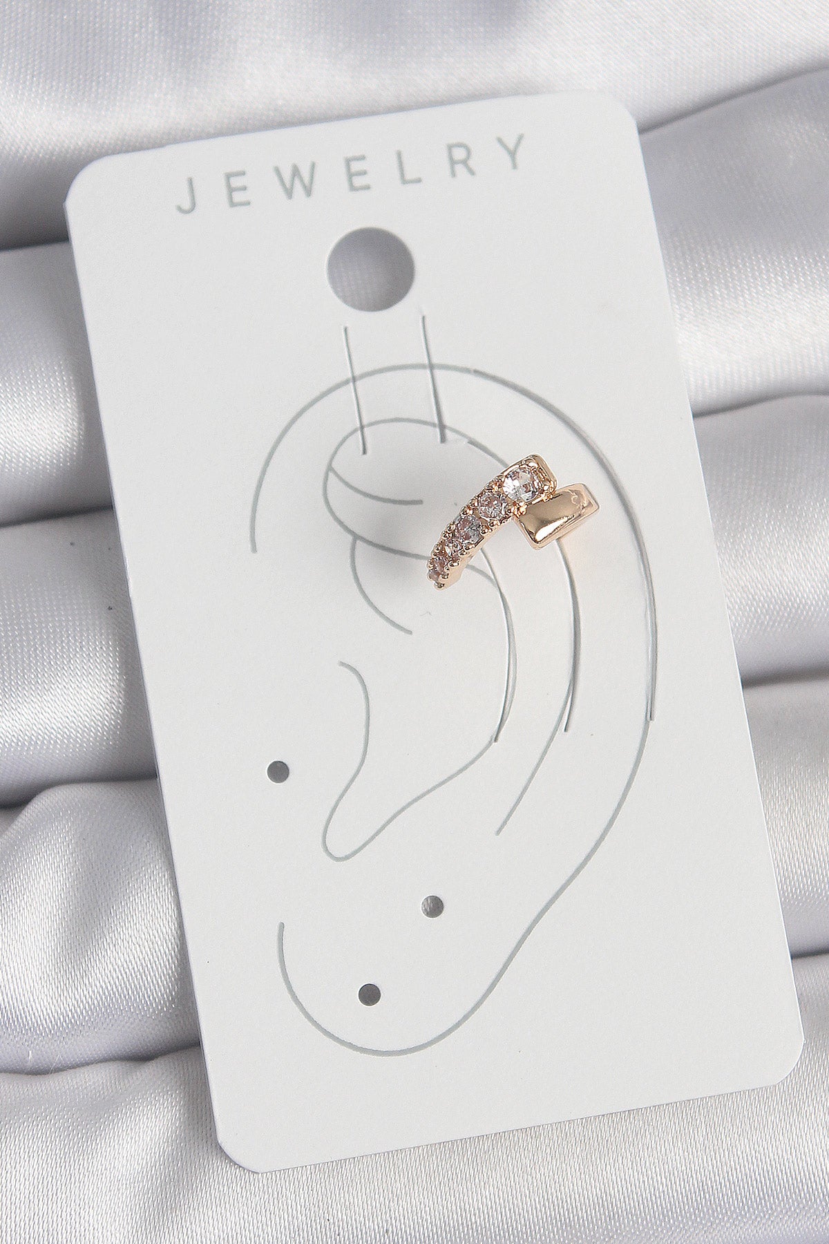 Pirinç Gold Renk Zirkon Taşlı Kadın Kıkırdak Küpe