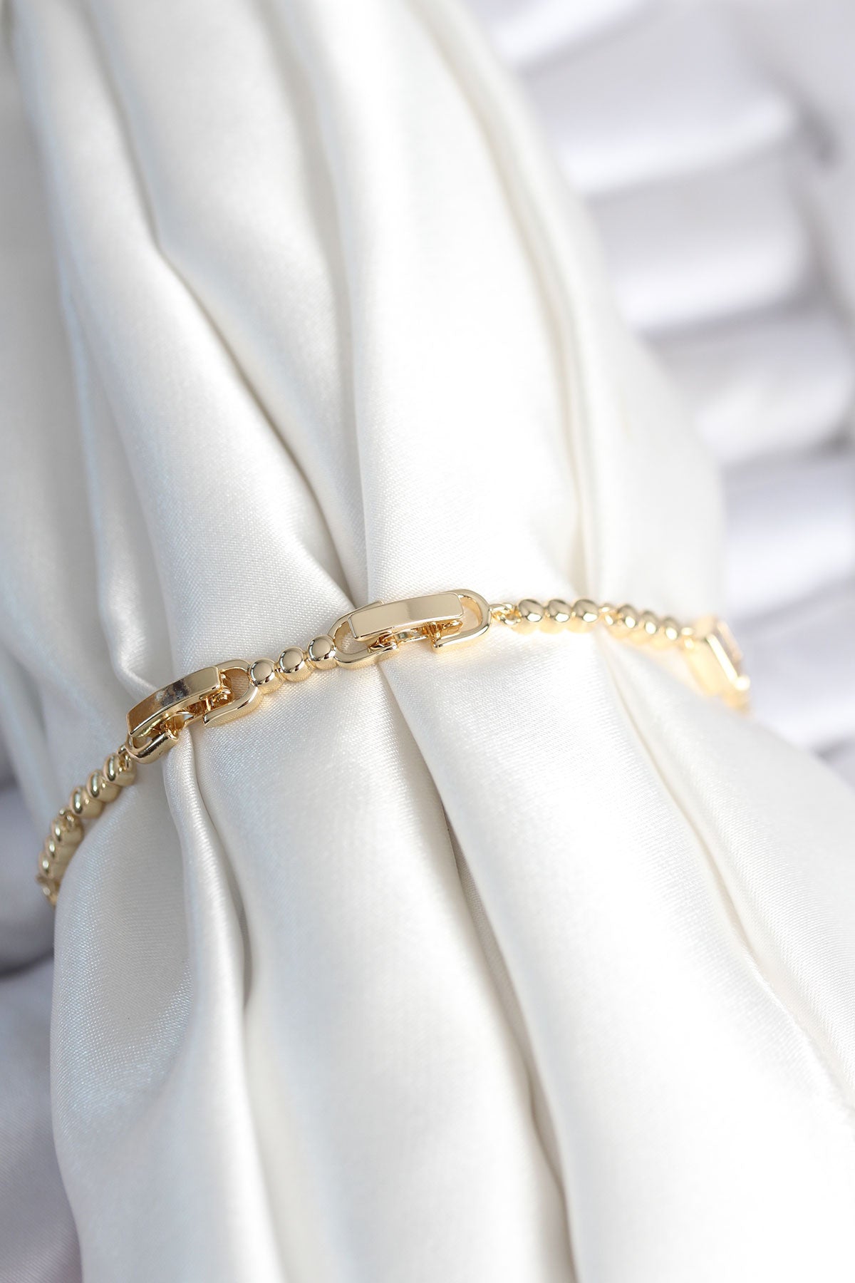 Pirinç Gold Renk Zirkon Taşlı Kalpli Model Kadın Bileklik - BB7967