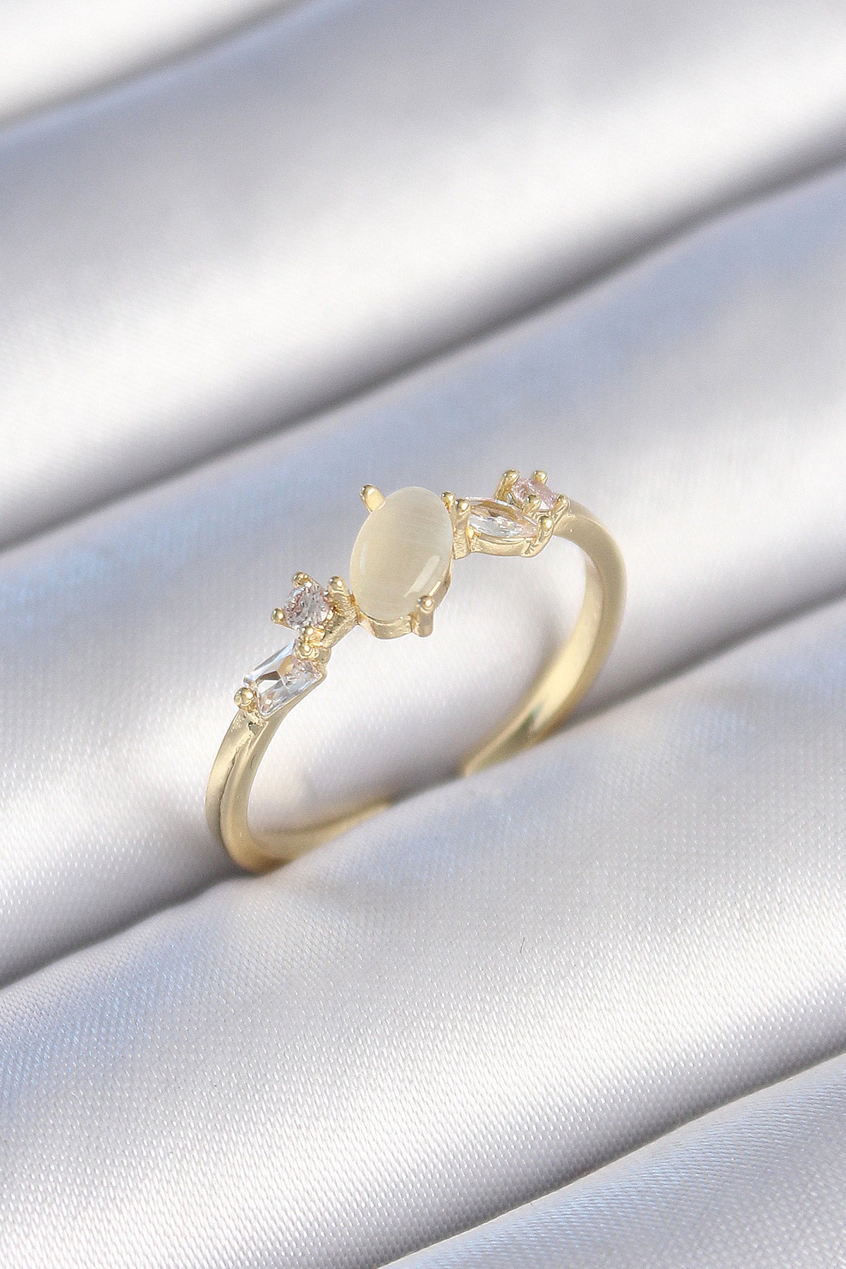 Pirinç Gold Renk Zirkon Taşlı Oval Beyaz Mineli Kadın Yüzük - BYK3444