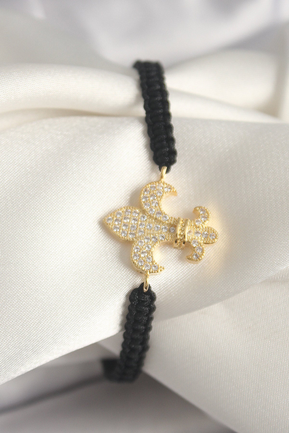 Pirinç Gold Renk Zirkon Taşlı Zambak Figür Asansörlü Makrome Model Kadın Bileklik - BB6801
