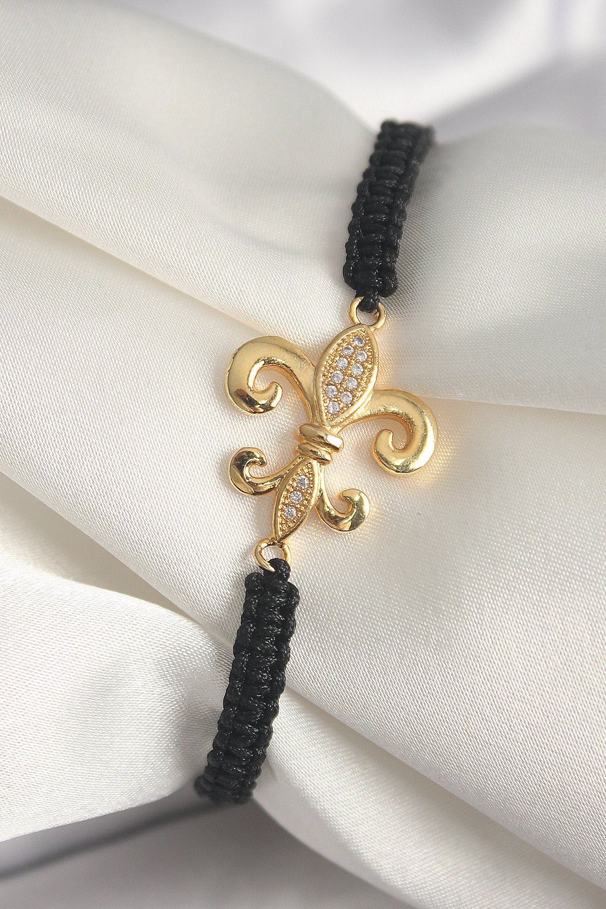 Pirinç Gold Renk Zirkon Taşlı Zambak Figür Asansörlü Makrome Model Kadın Bileklik - BB6807