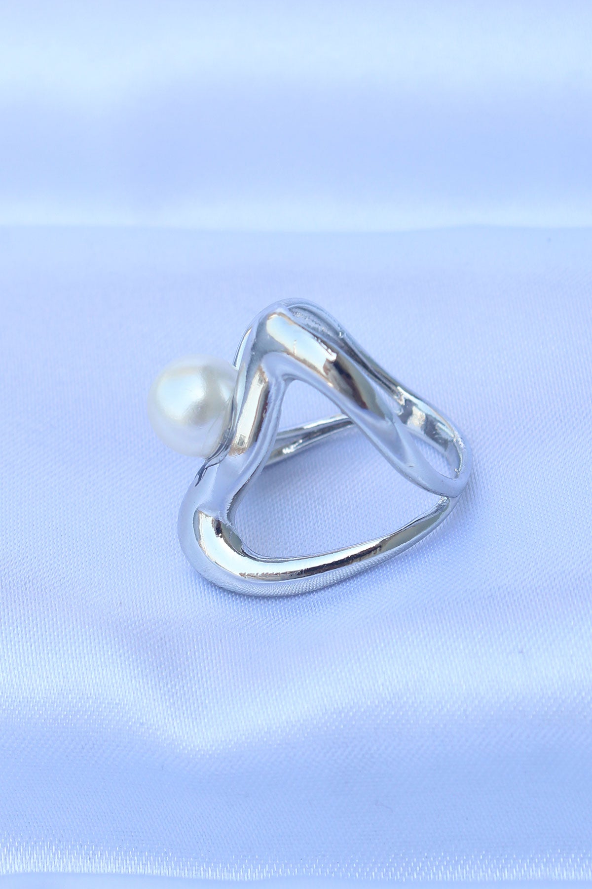 Pirinç Gümüş Renk Ayarlanabilir İnci Taşlı Yüzük - BYK3165
