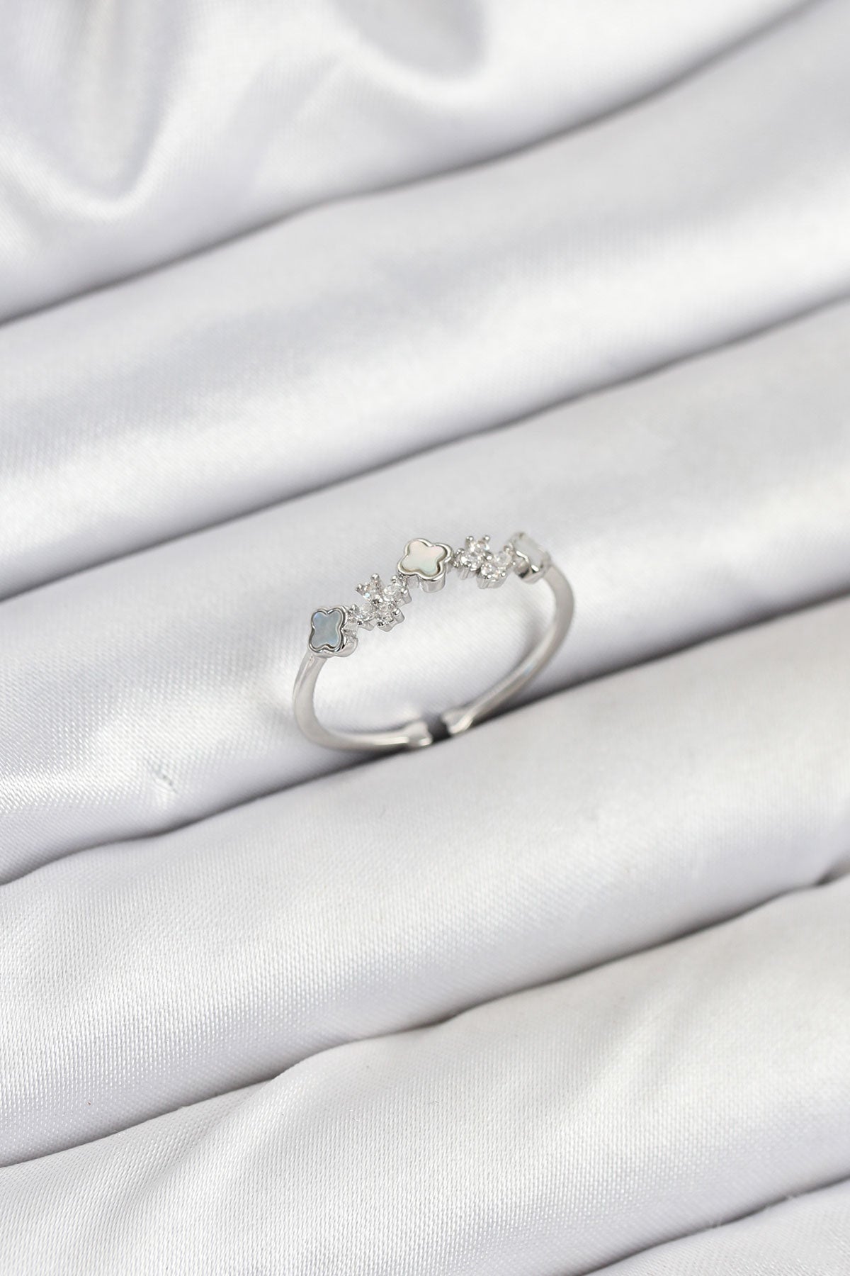 Pirinç Gümüş Renk Minimal Yonca Detaylı Kadın Yüzük - BYK3843