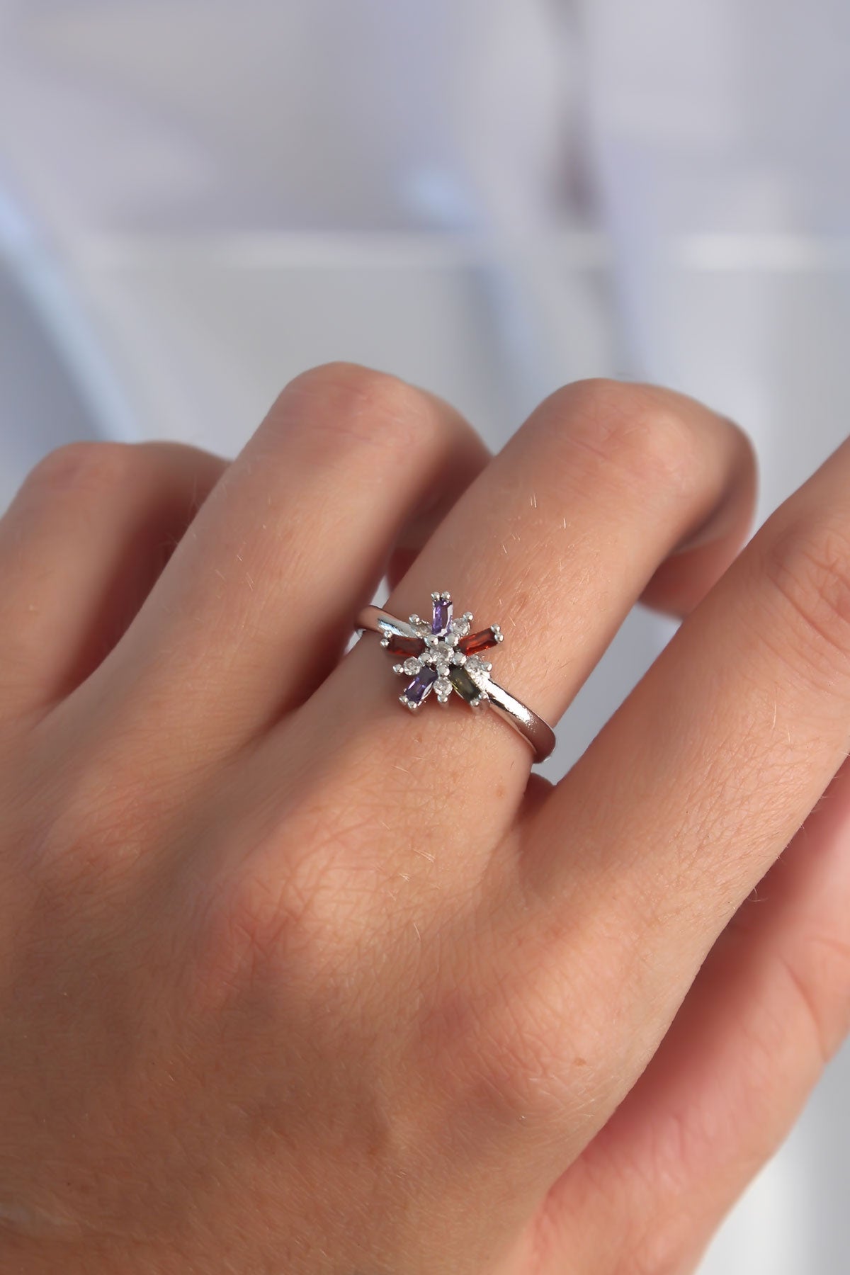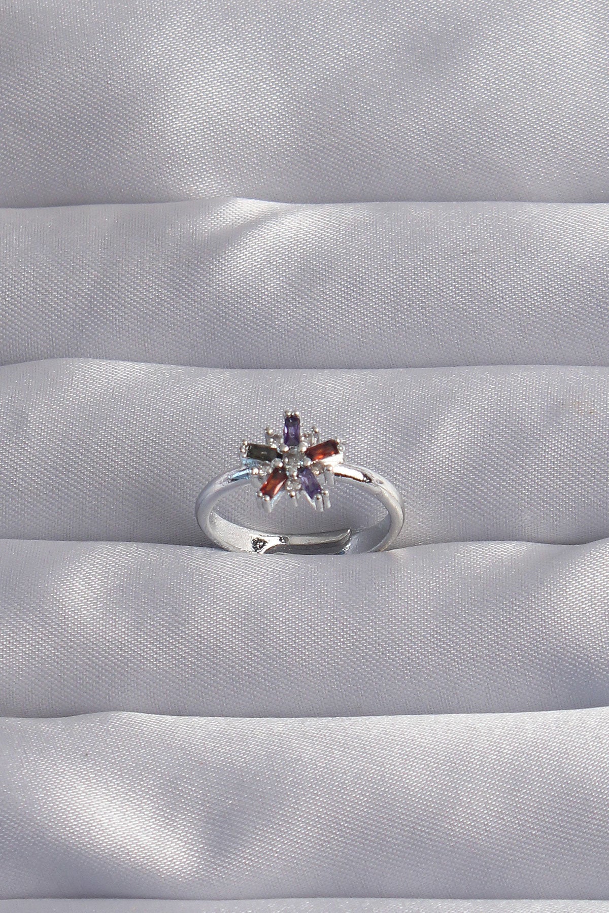 Pirinç Gümüş Renk Renkli Zirkon Taşlı Ayarlamalı Yüzük - BYK3256
