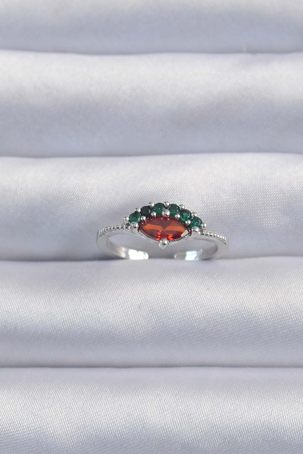 Pirinç Gümüş Renk Renkli Zirkon Taşlı Ayarlanabilir Karpuz Model Yüzük - BYK3294