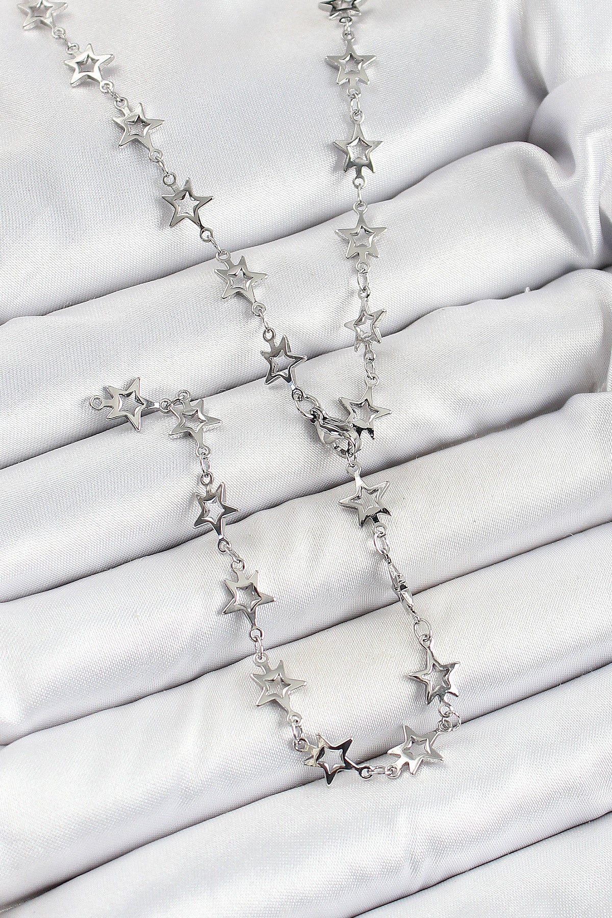 Pirinç Gümüş Renk Yıldızlı Kadın Y Kolye - BKO10300