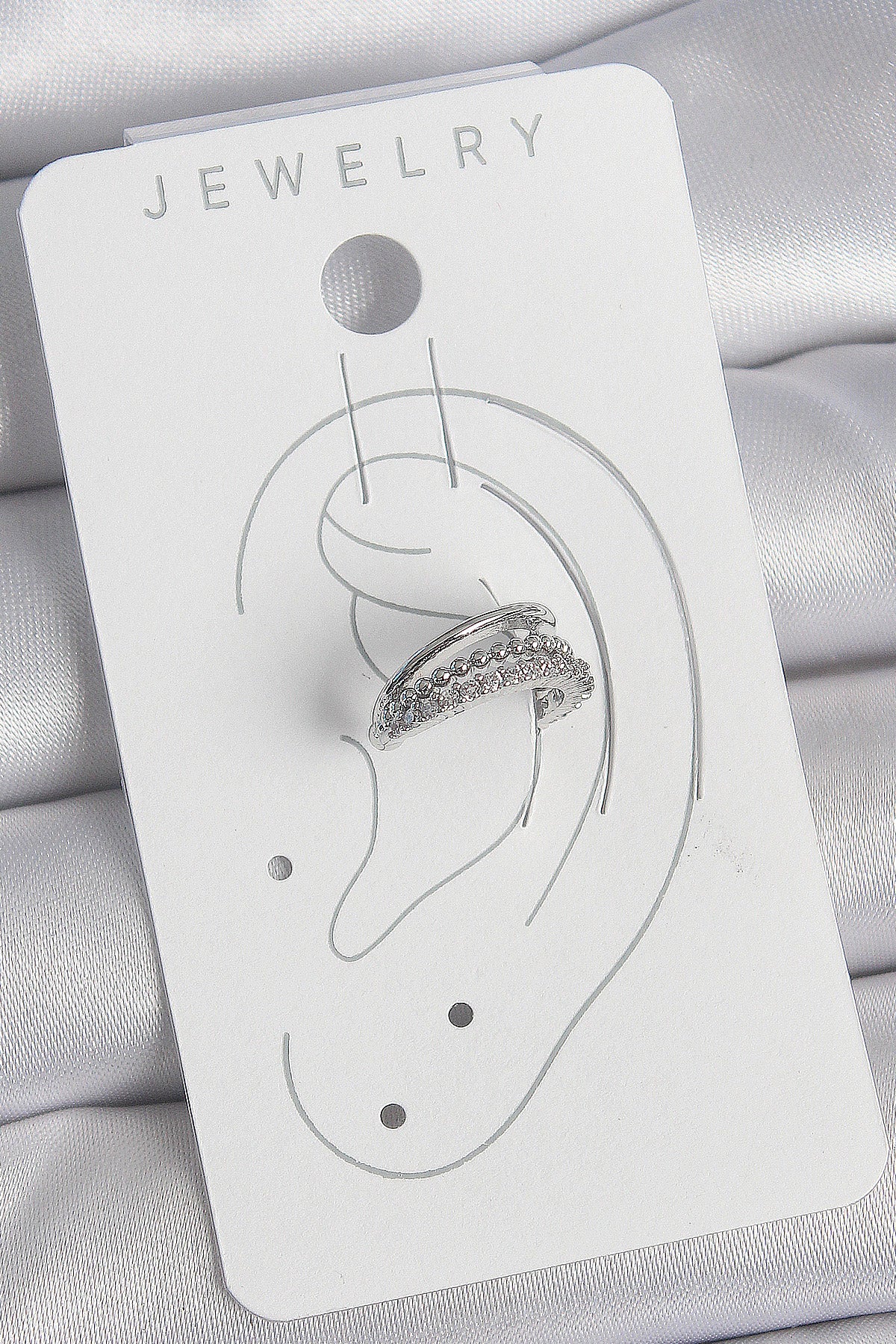 Pirinç Gümüş Renk Zirkon Taşlı 3'Lü Sıralı Kadın Kıkırdak Küpe