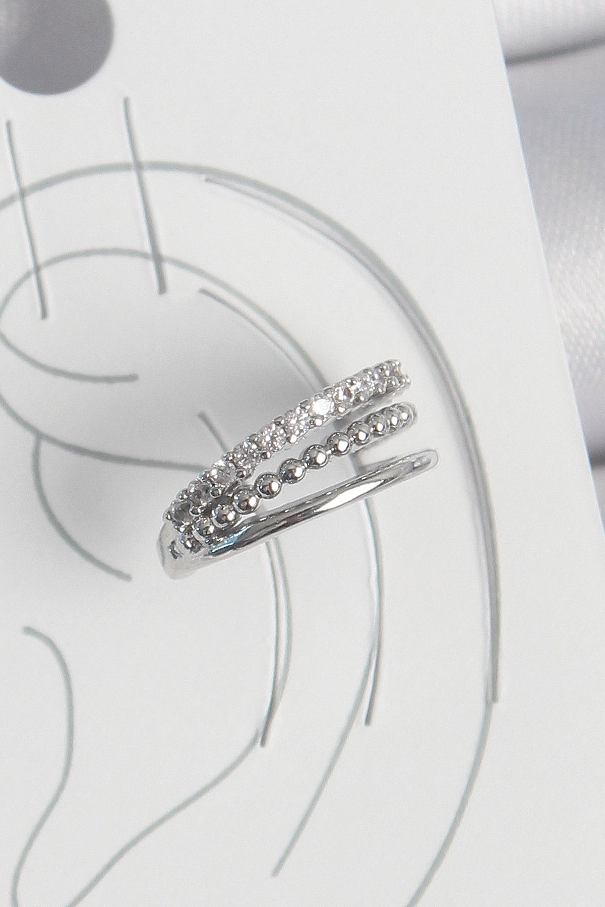 Pirinç Gümüş Renk Zirkon Taşlı 3'Lü Sıralı Model Kadın Kıkırdak Küpe