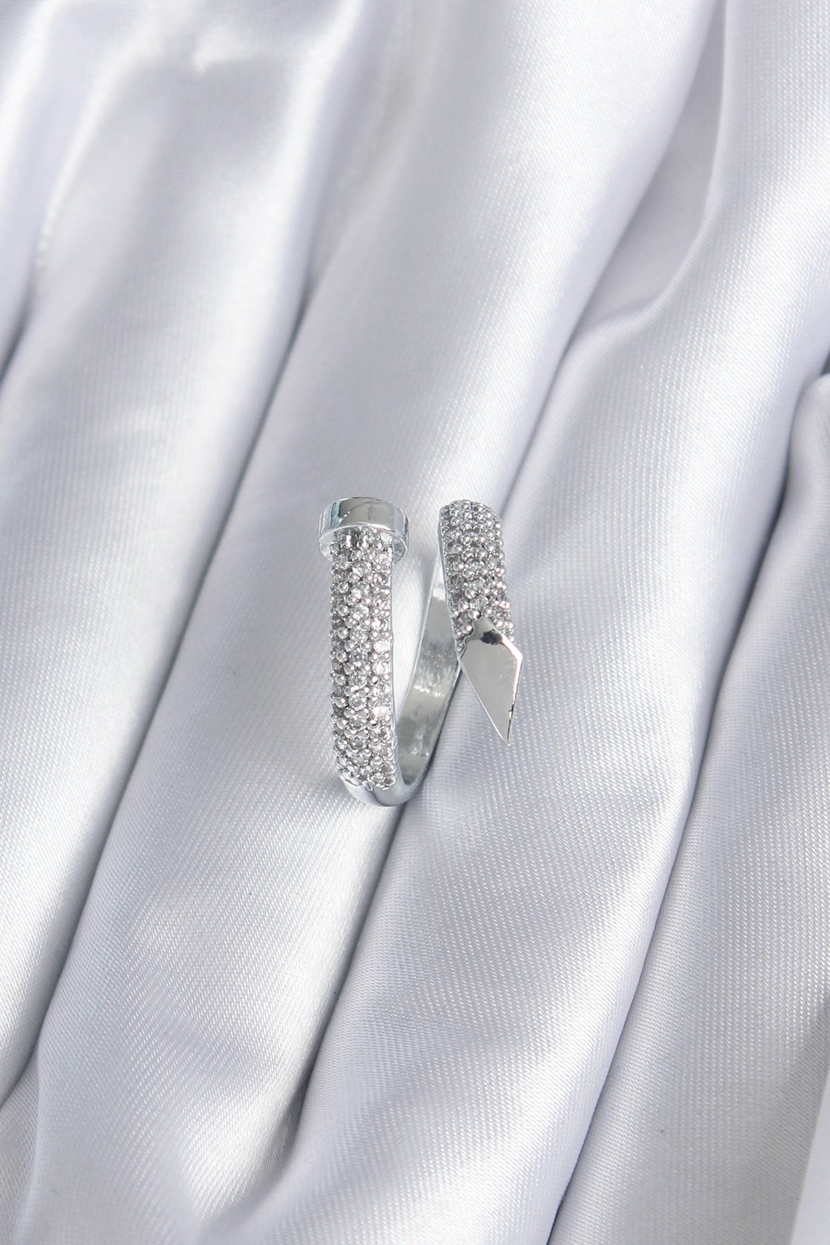 Pirinç Gümüş Renk Zirkon Taşlı Çivi Model Kadın Yüzük - BYK2877