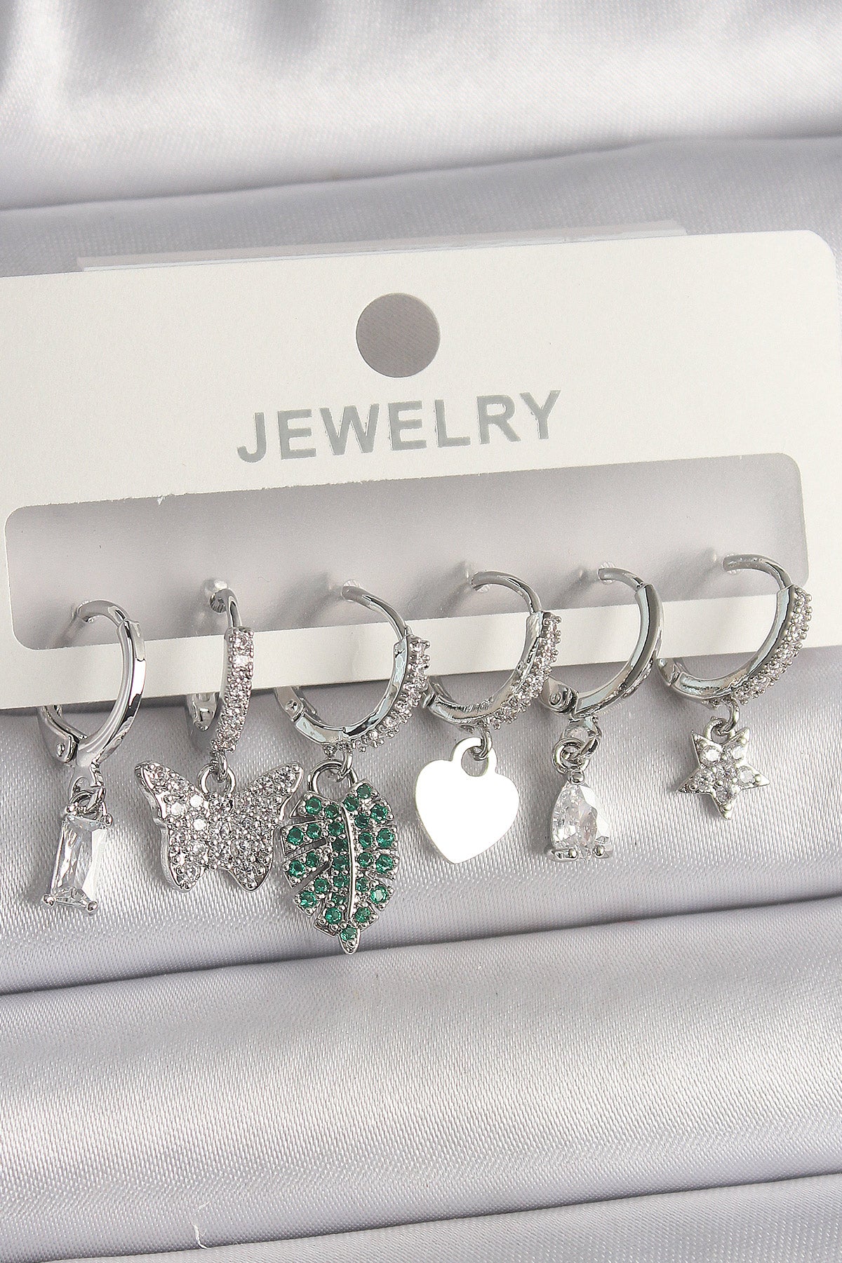 Pirinç Gümüş Renk Zirkon Taşlı Çoklu Figür Kadın Küpe Seti - BKP10097