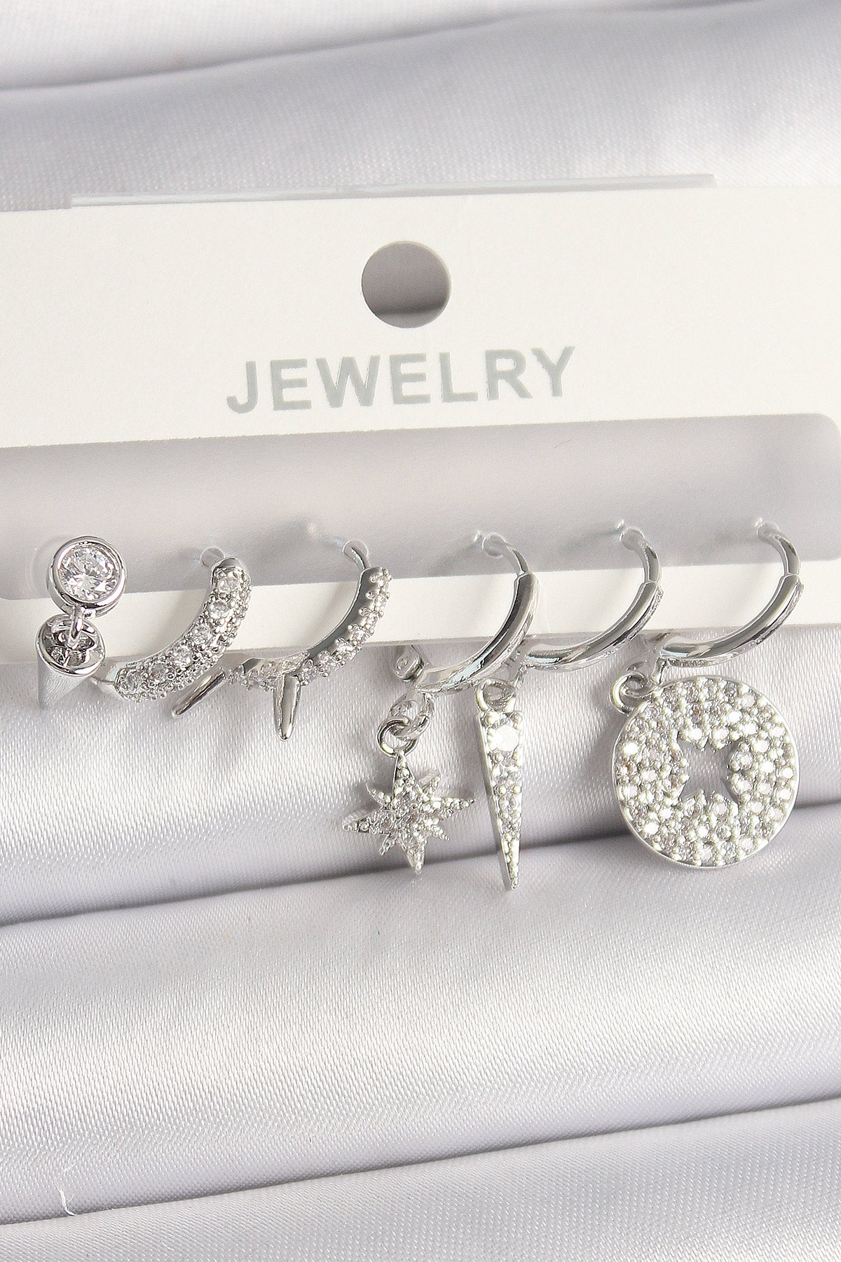 Pirinç Gümüş Renk Zirkon Taşlı Çoklu Figür Kadın Küpe Seti - BKP10103