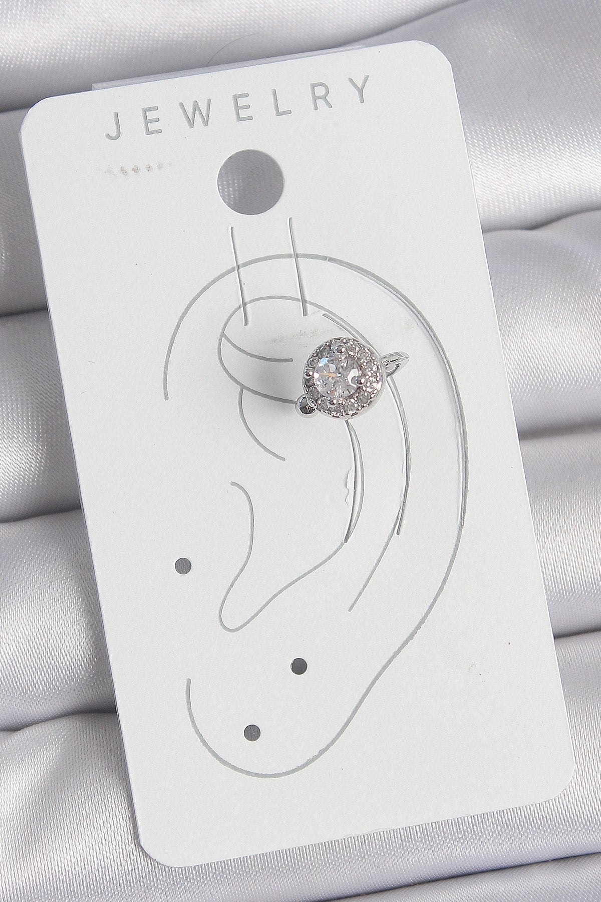 Pirinç Gümüş Renk Zirkon Taşlı Kadın Kıkırdak Model Küpe
