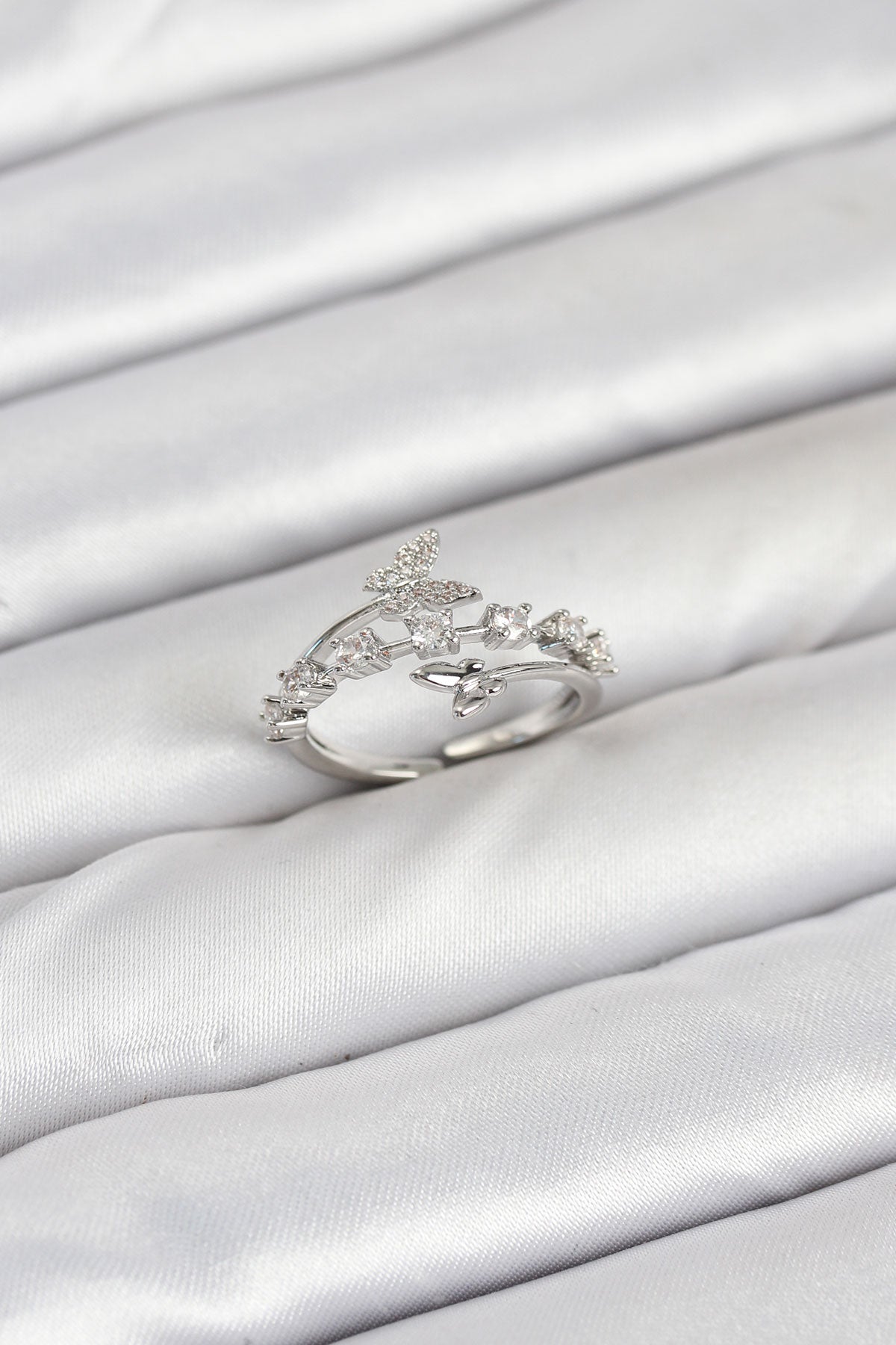 Pirinç Gümüş Renk Zirkon Taşlı Kelebek Model Kadın Yüzük - BYK3851