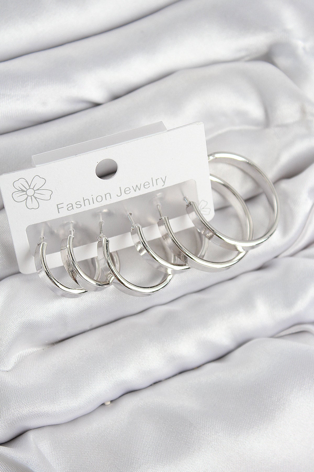 Pirinç Halka Model Gümüş Renk Kadın Set Küpe - BKP11048