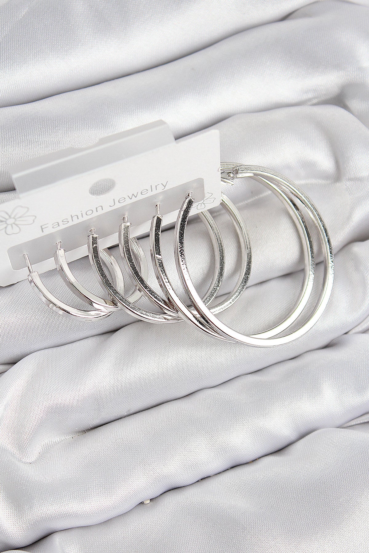 Pirinç Halka Model Gümüş Renk Kadın Set Küpe - BKP11050