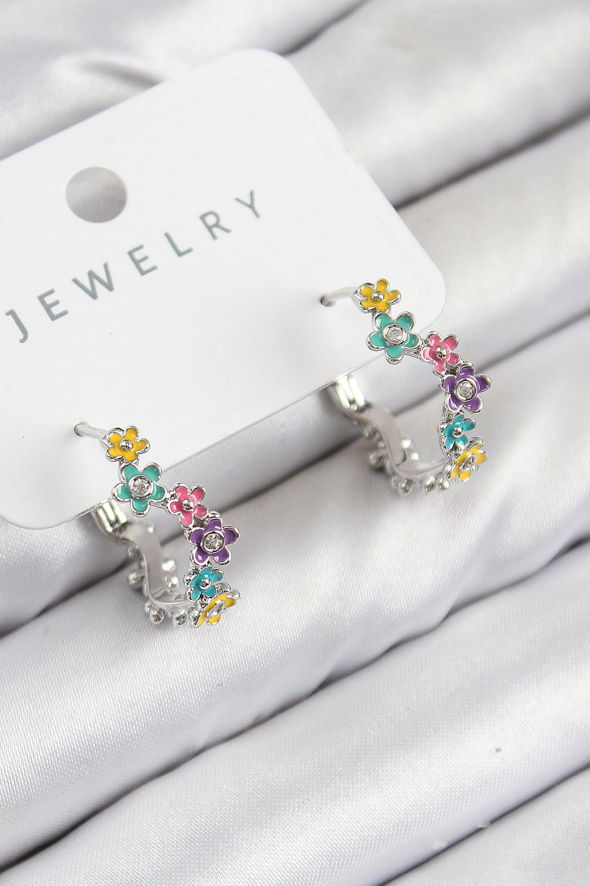 Pirinç Renkli Papatya Model Gümüş Renk Kadın Küpe - BKP11078