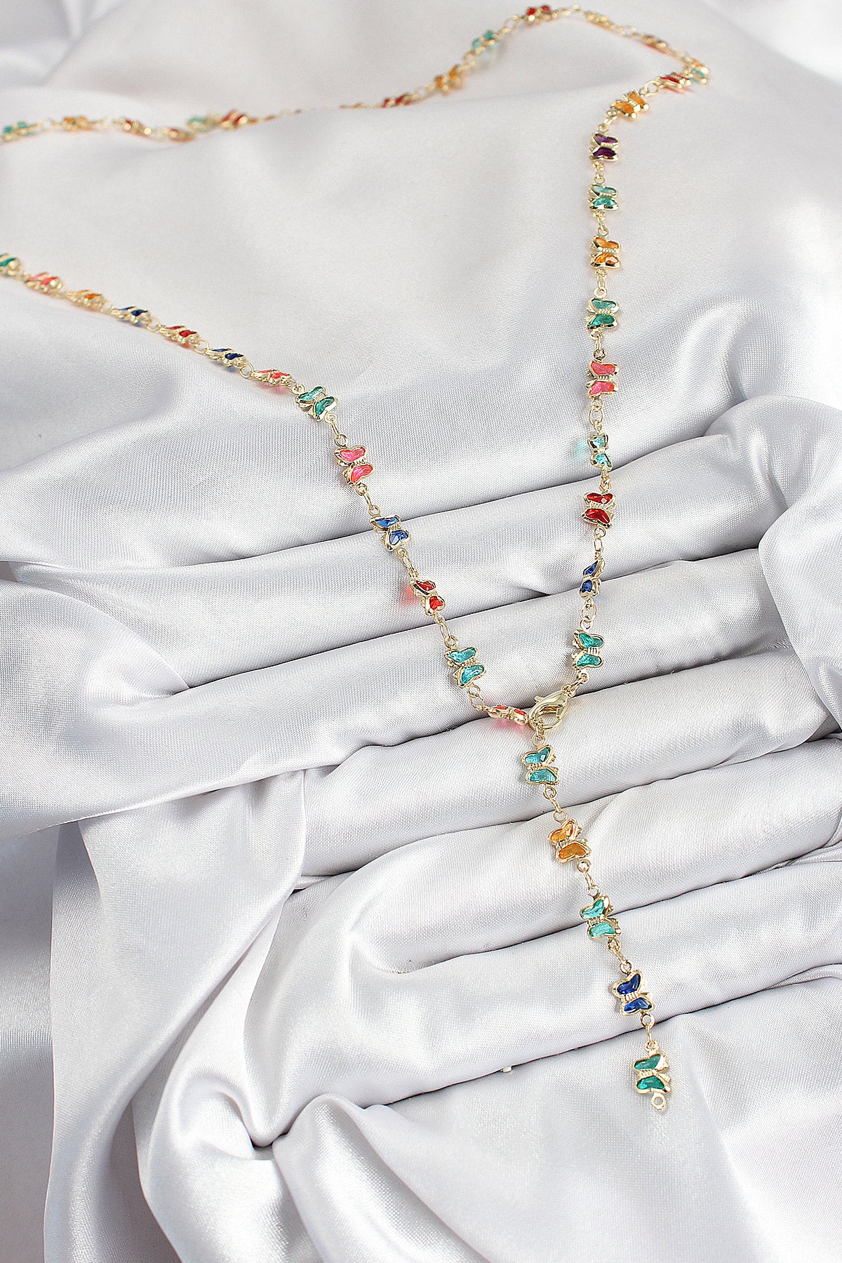 Pirinç Renkli Zirkon Taşlı Kelebek Model Gold Renk Kadın Y Kolye - BKO10386