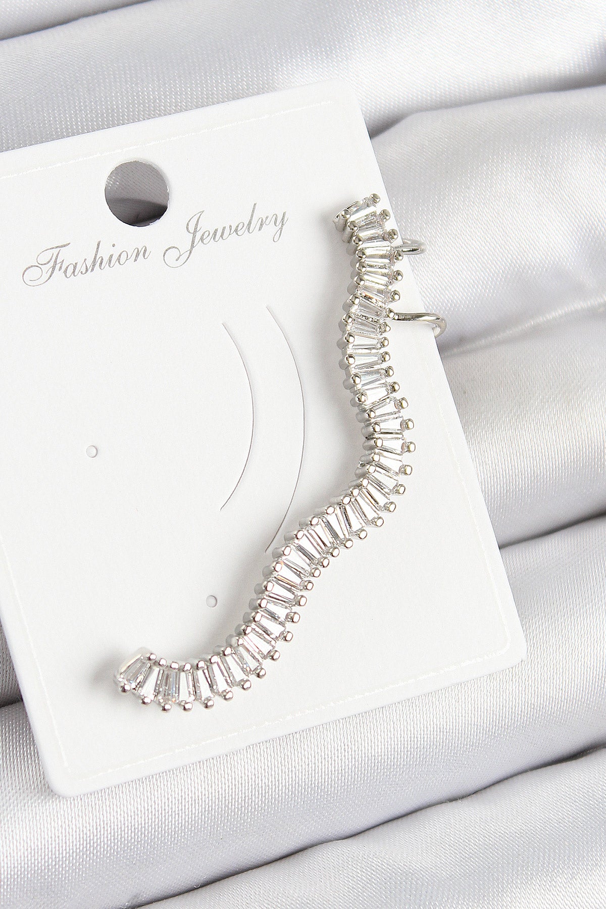 Pirinç Su Yolu Model Gümüş Renk Sağ Kıkırdak Küpe - BKP10986
