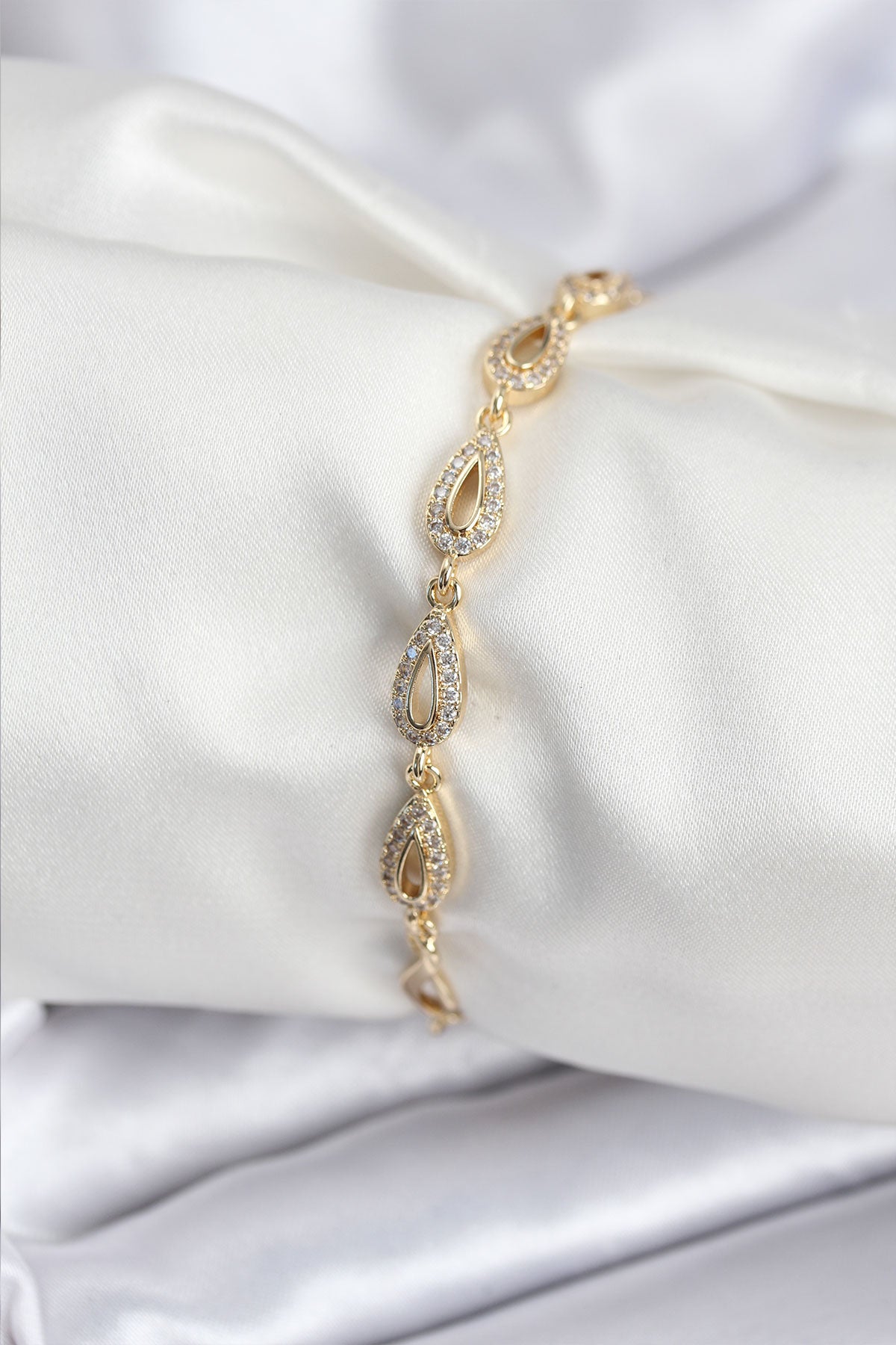 Pirinç VIP Seri Gold Renk Sıralı Damla Model Kadın Bileklik - BB7932