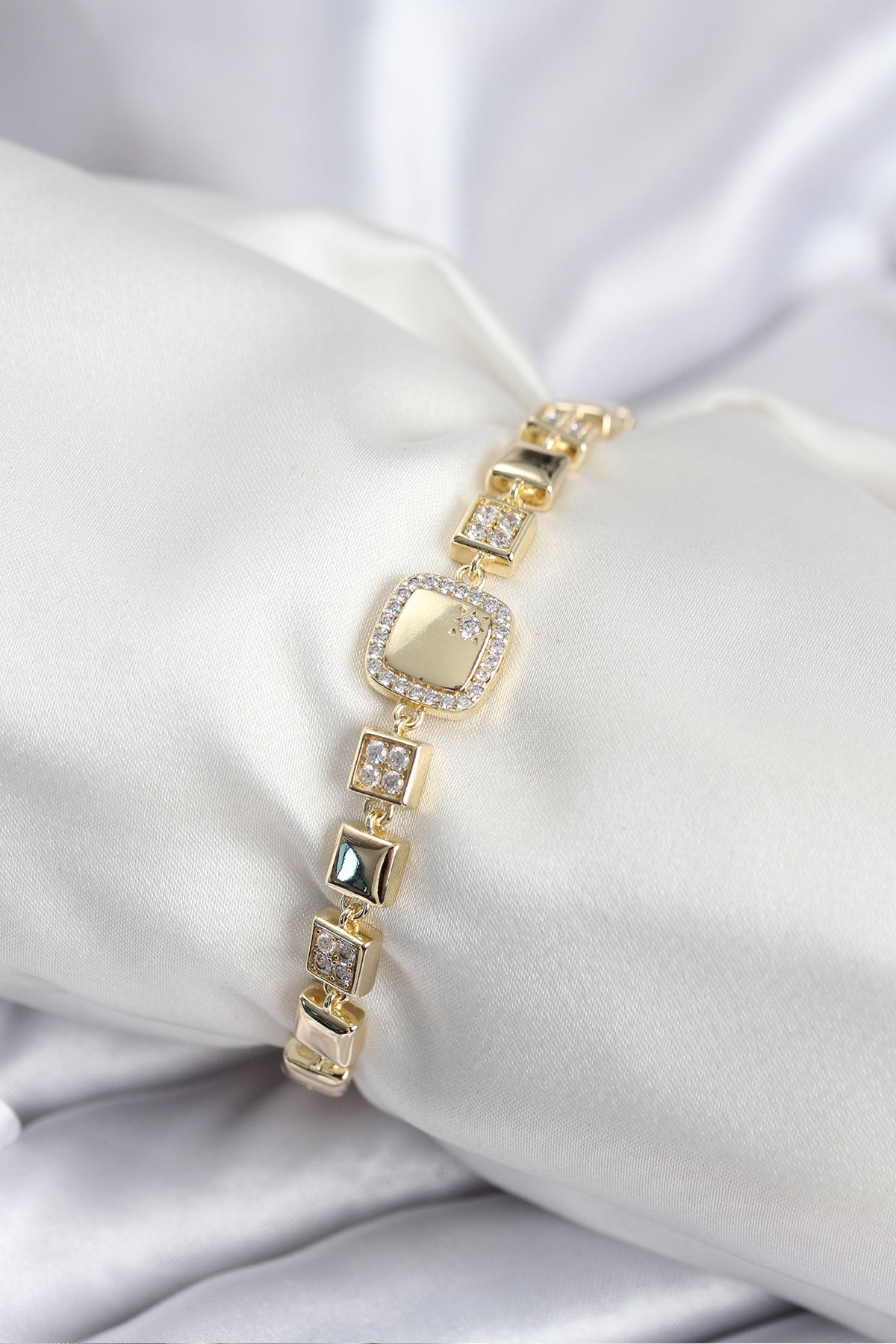 Pirinç VIP Seri Gold Renk Zirkon Taşlı Model Kadın Bileklik - BB7940