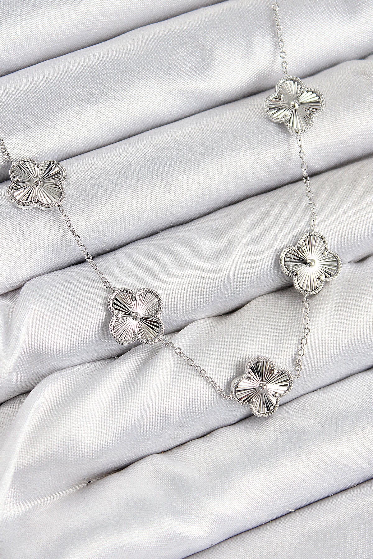 Pirinç VIP Yonca Model Gümüş Renk Kadın Kolye