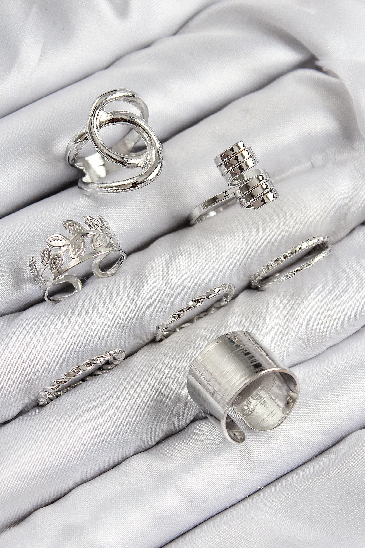 Pirinç Yaprak Model Gümüş Renk Kadın Yüzük Kombin Set - BYK3818