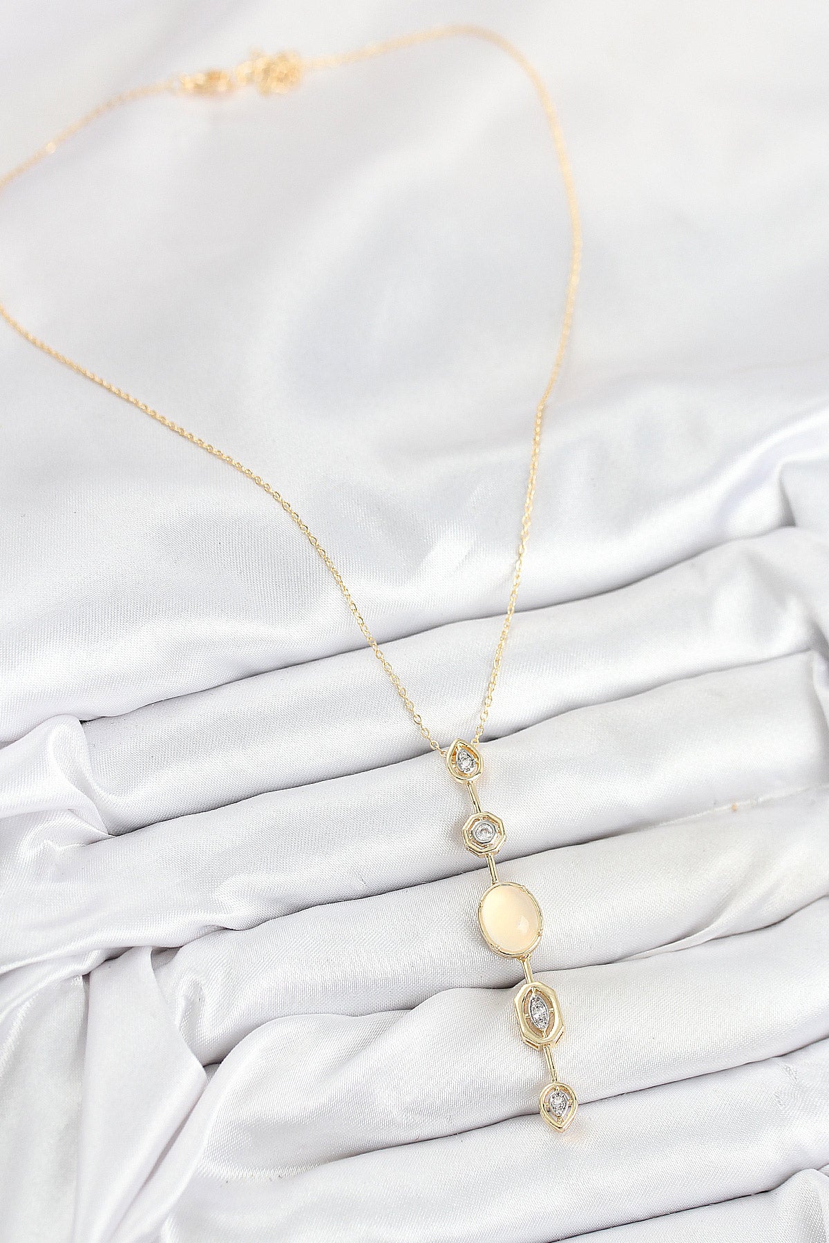 Pirinç Zincir Sarı Gold Renk Zirkon Taşlı Y Kolye - BKO10555