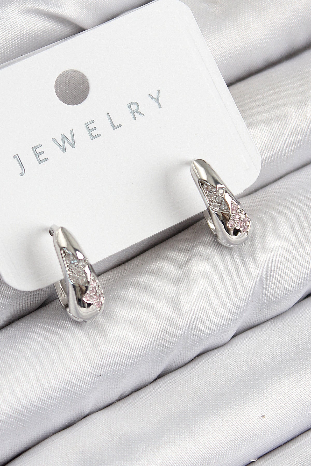Pirinç Zirkon Taş Desenli Model Gümüş Renk Kadın Küpe - BKP11067