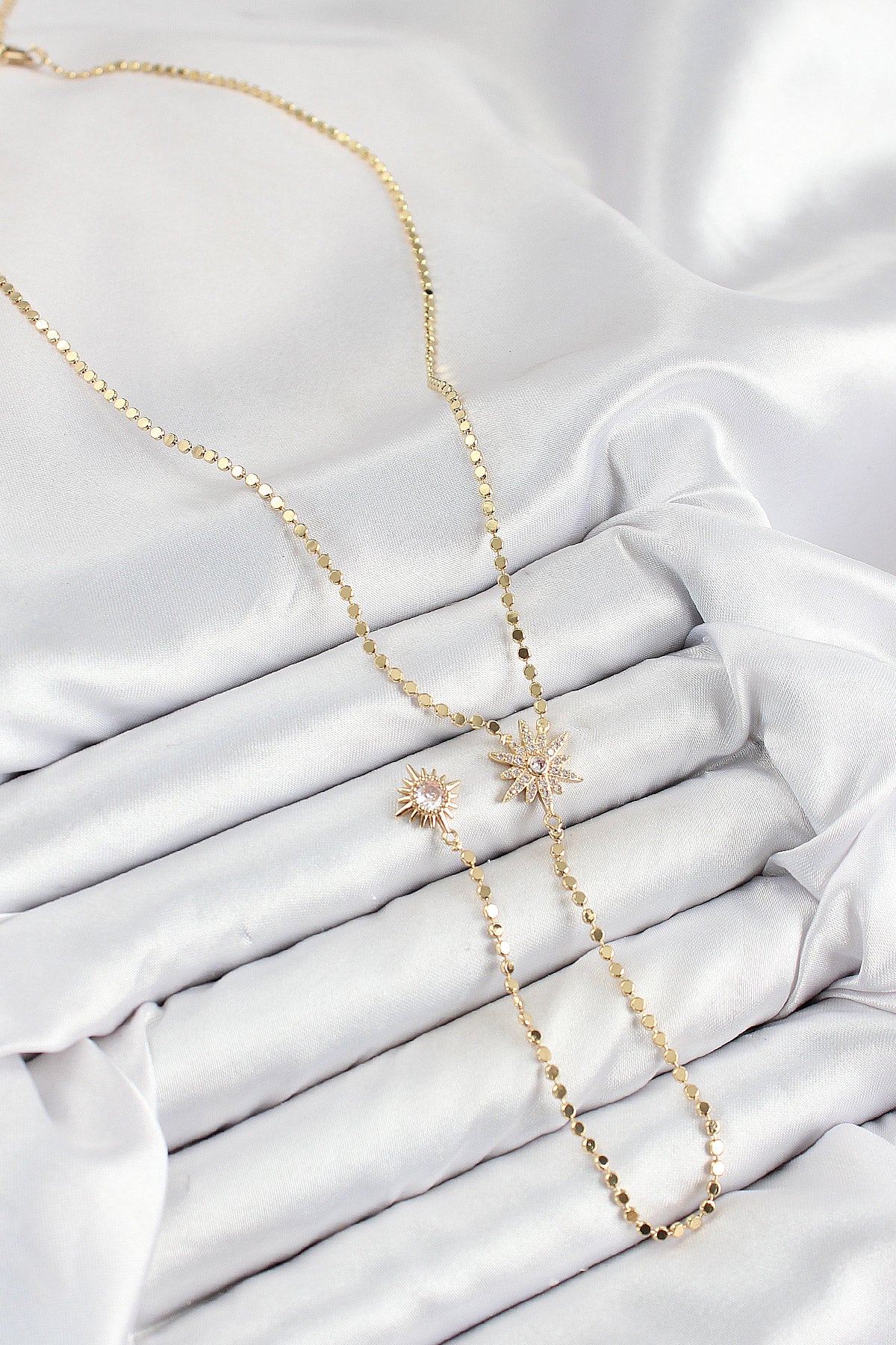 Pirinç Zirkon Taşlı Ezme Zincirli Kutup Yıldızı Model Gold Renk Y Kolye - BKO10469