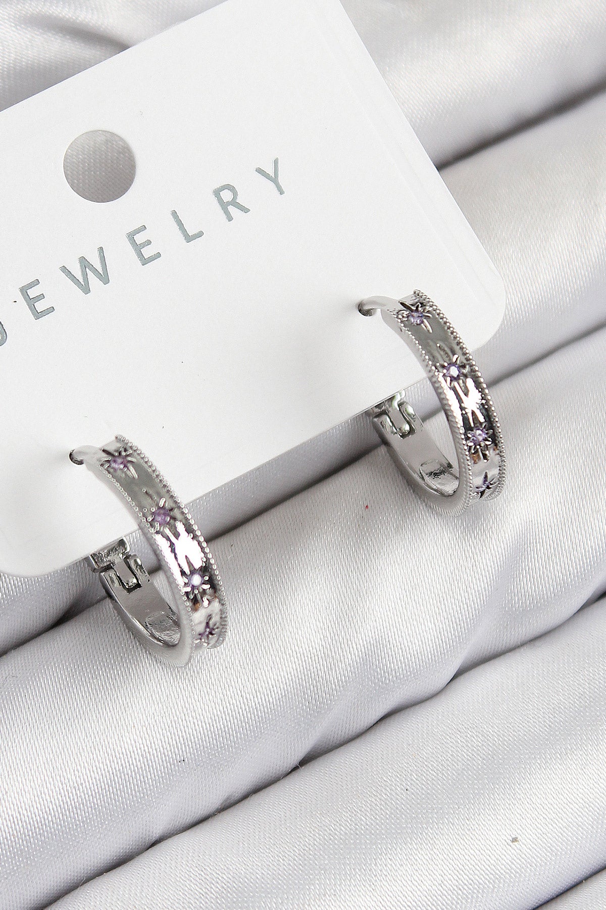 Pirinç Zirkon Taşlı Halka Model Gümüş Renk Kadın Küpe - BKP11071