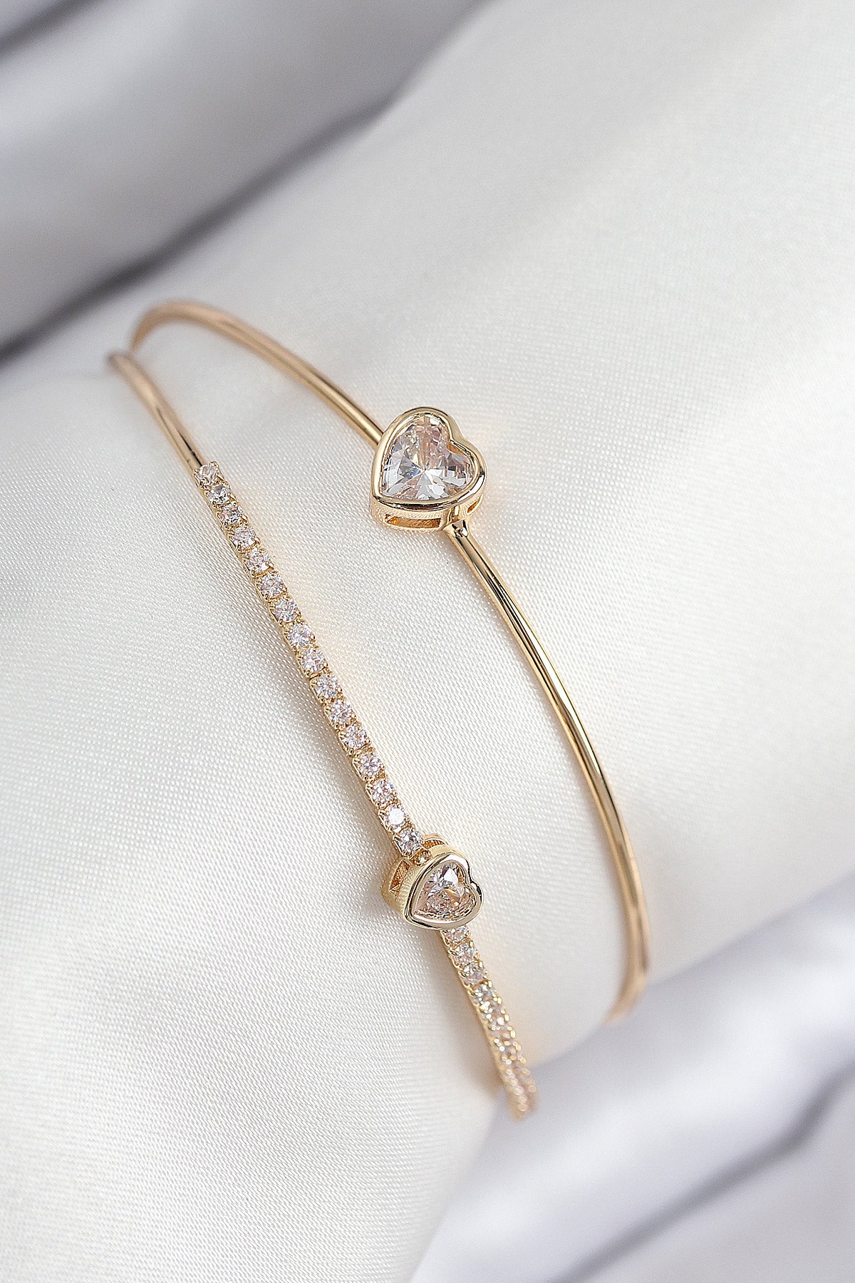 Pirinç Zirkon Taşlı Kalp Model Gold Renk Kadın Bileklik